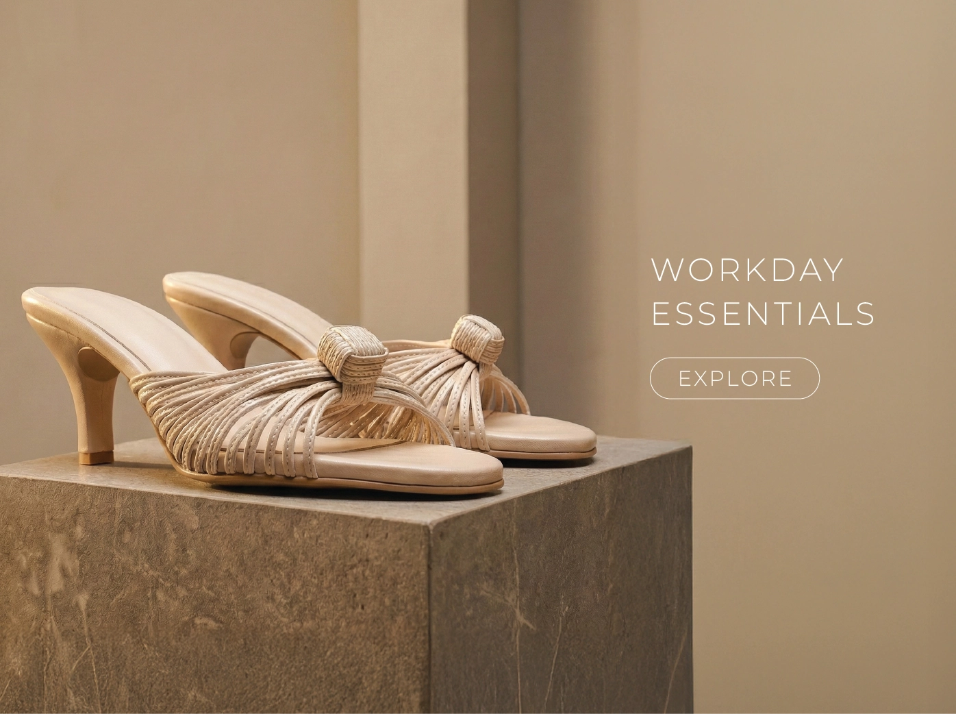 Classic Mules Block Heels - Beige