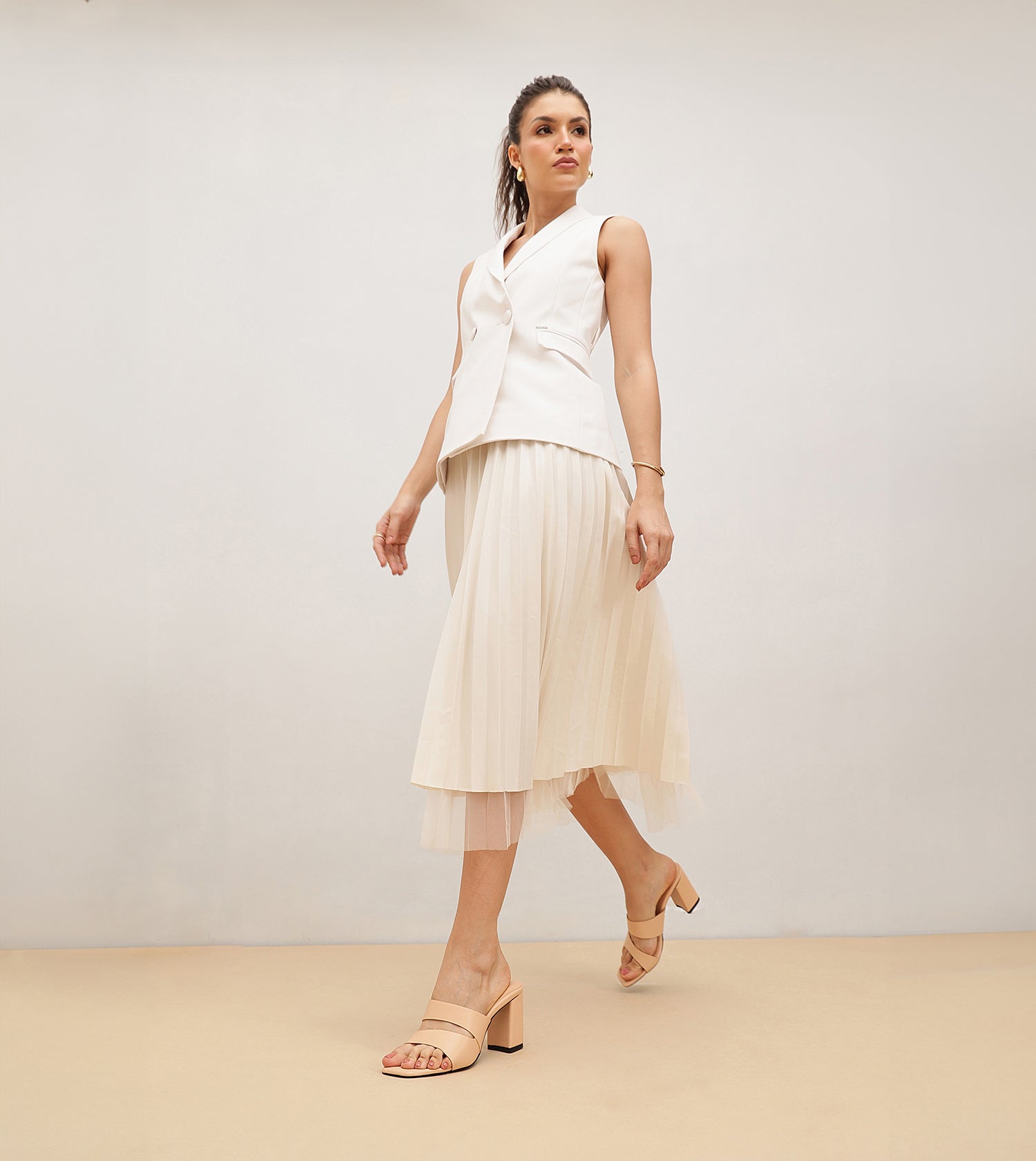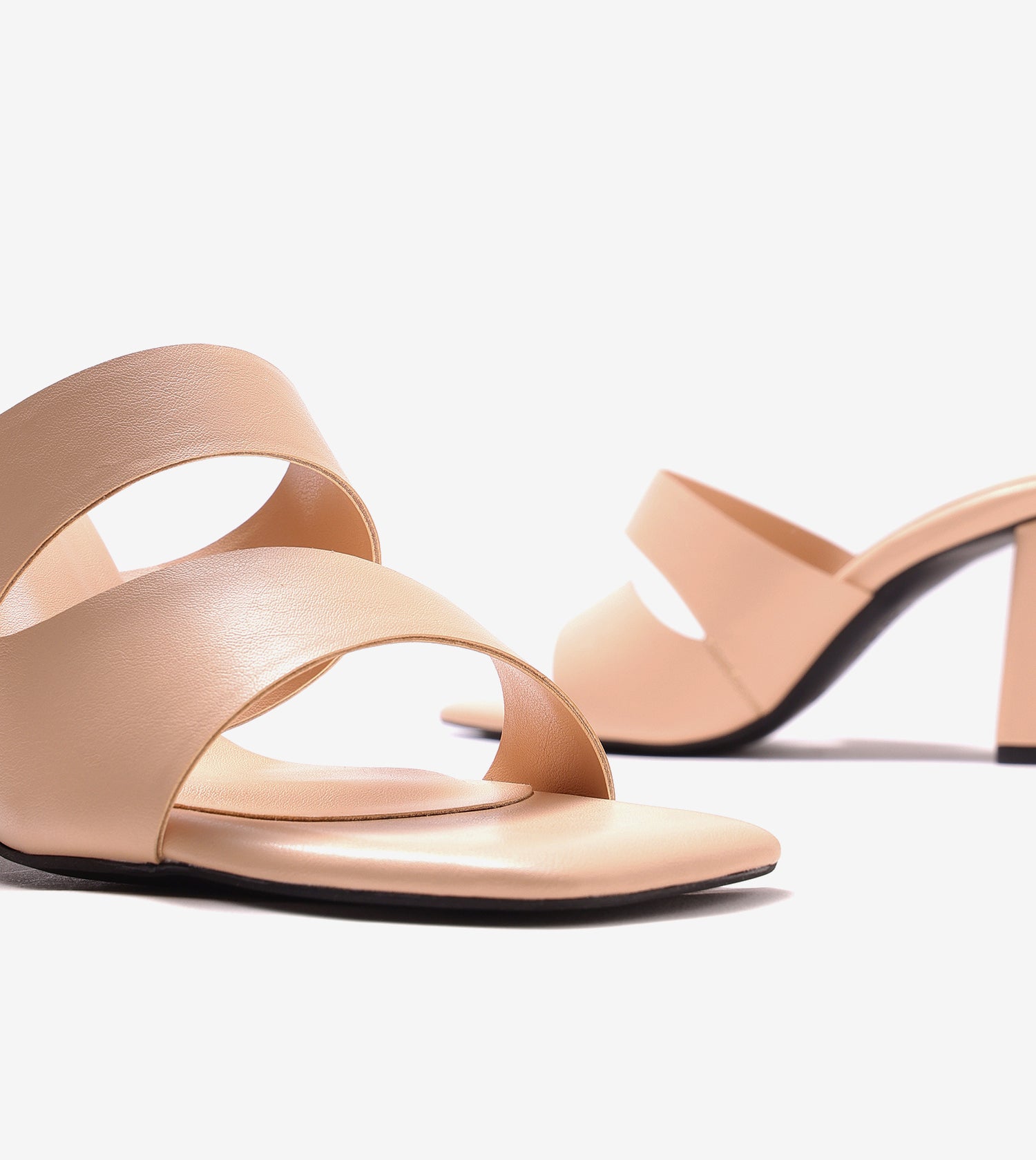 Step into confidence with these asymmetrical cutout heeled mules. In a soft beige, they add an alluring touch and a subtle shine to elevate your go-to outfits. Set on sculptural heels, they are designed to make you the center of attention, effortlessly standing out from the crowd.