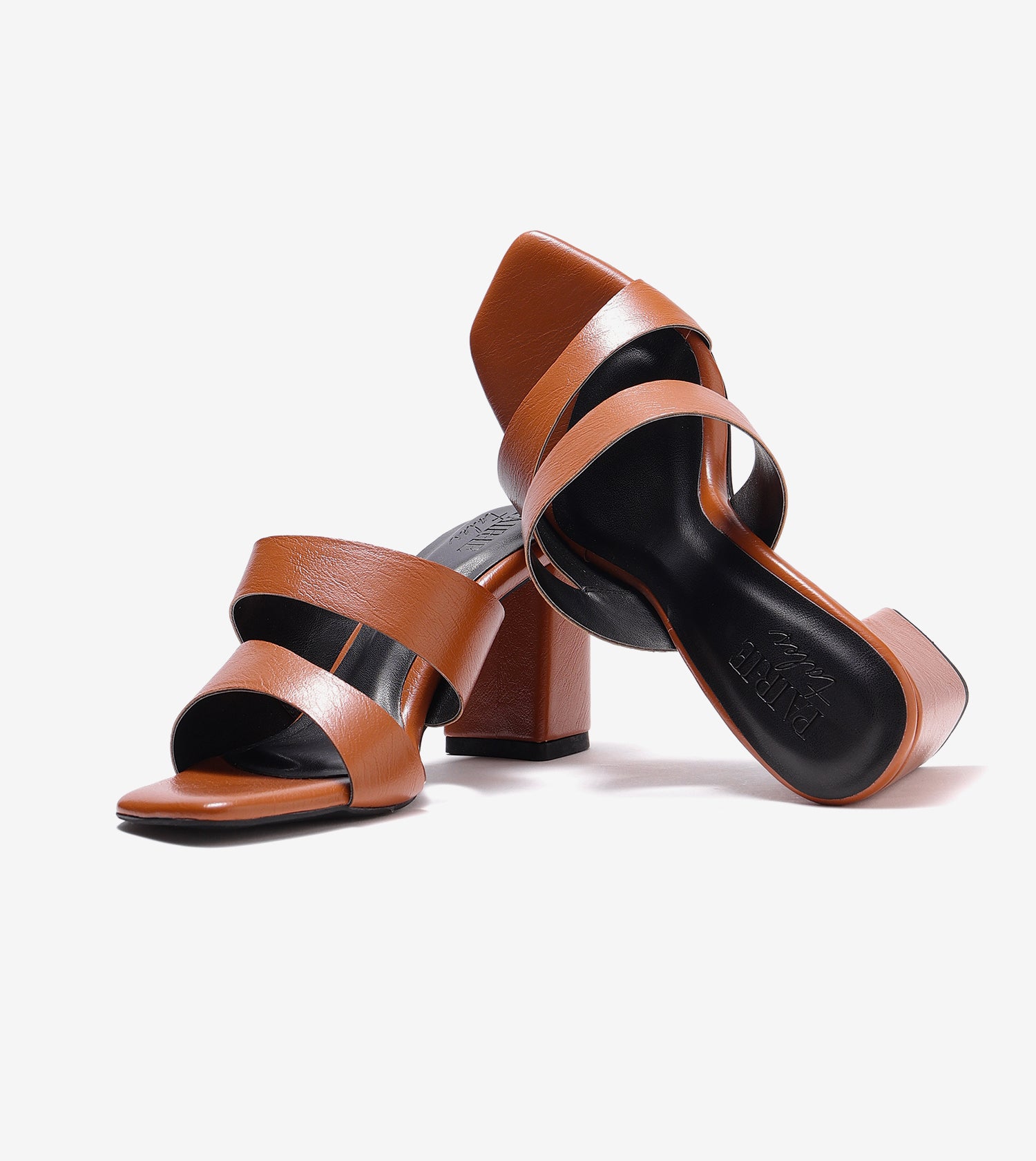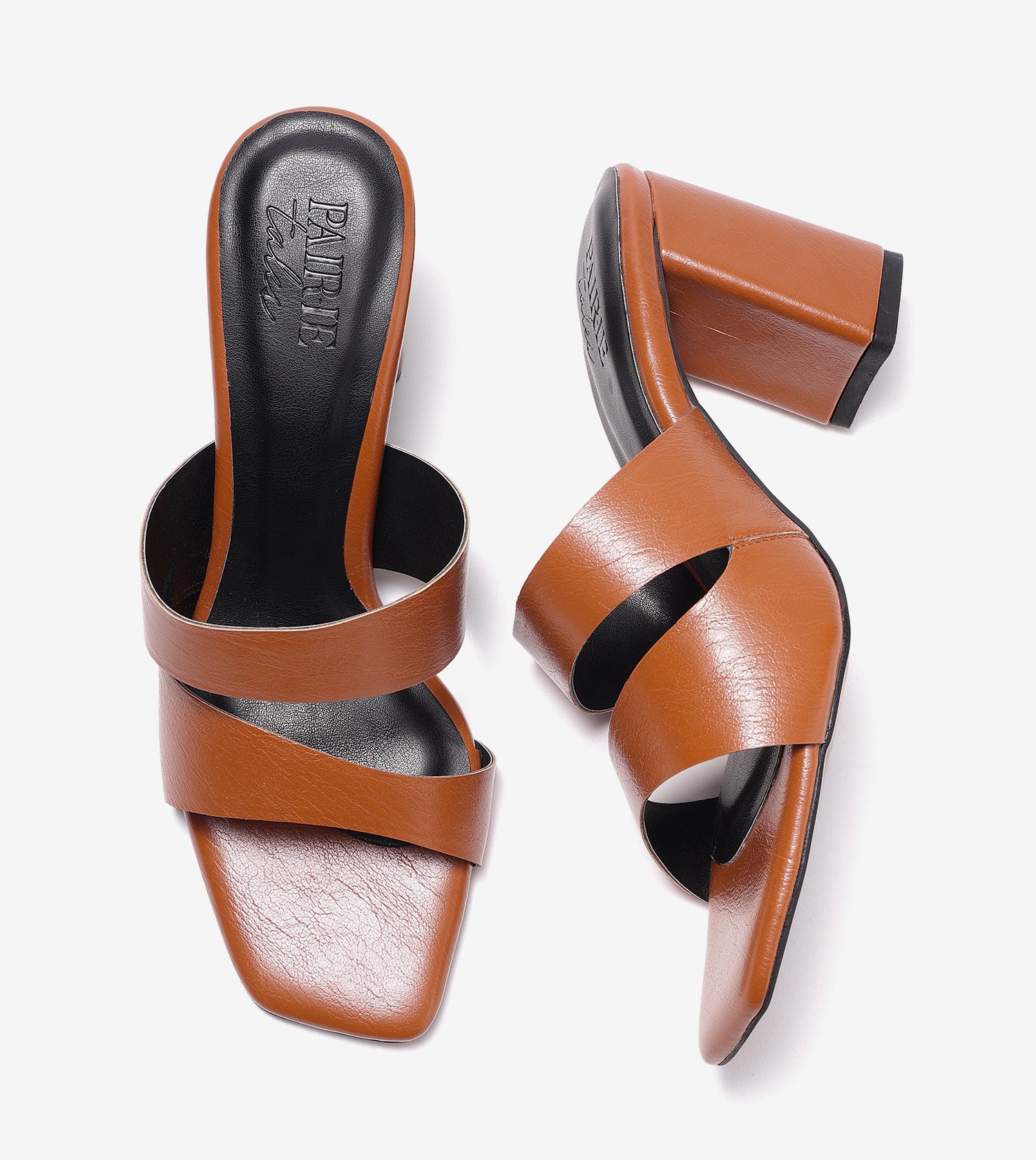 Make a bold statement with these asymmetrical cutout heeled mules. In a rich tan hue, they add a touch of allure and a subtle shine to elevate your favorite looks. Set on sculptural heels, these mules are designed to make you stand out with confidence and style.