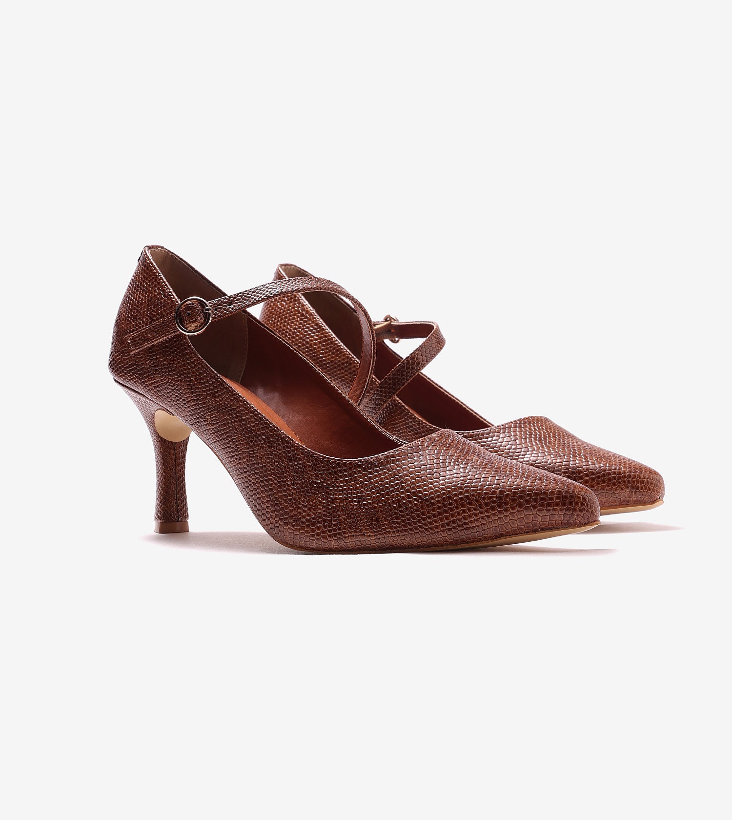 Asymmetric Textured Snake-Print Strappy Heeled Pumps - Brown