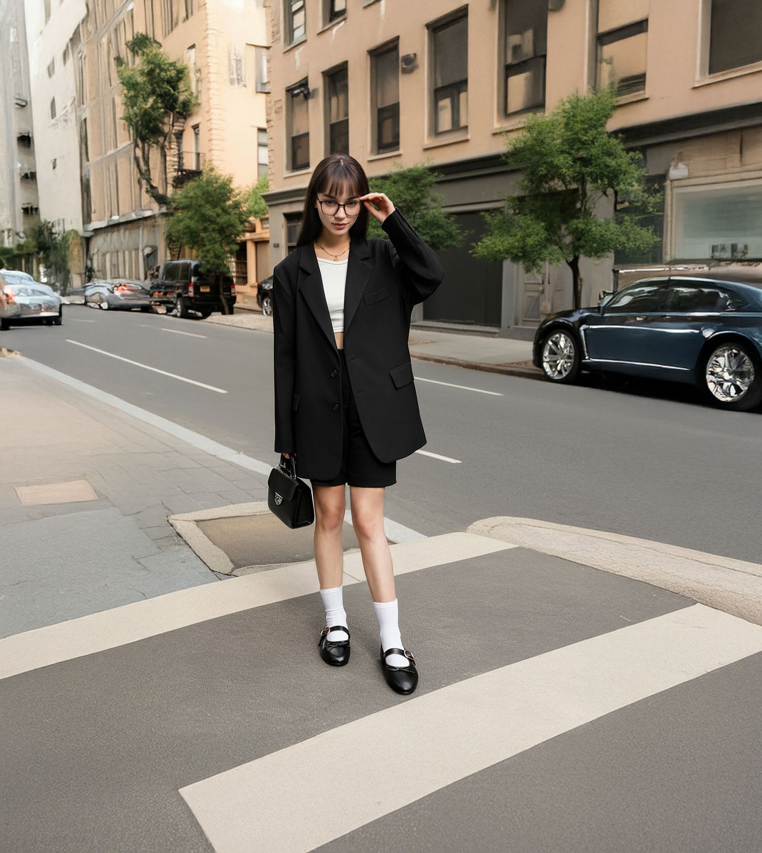 Style Tip: Team with mom jeans, a tucked graphic tee, and an oversized denim jacket. A messy bun and sling bag will complete the effortless, off-duty look.