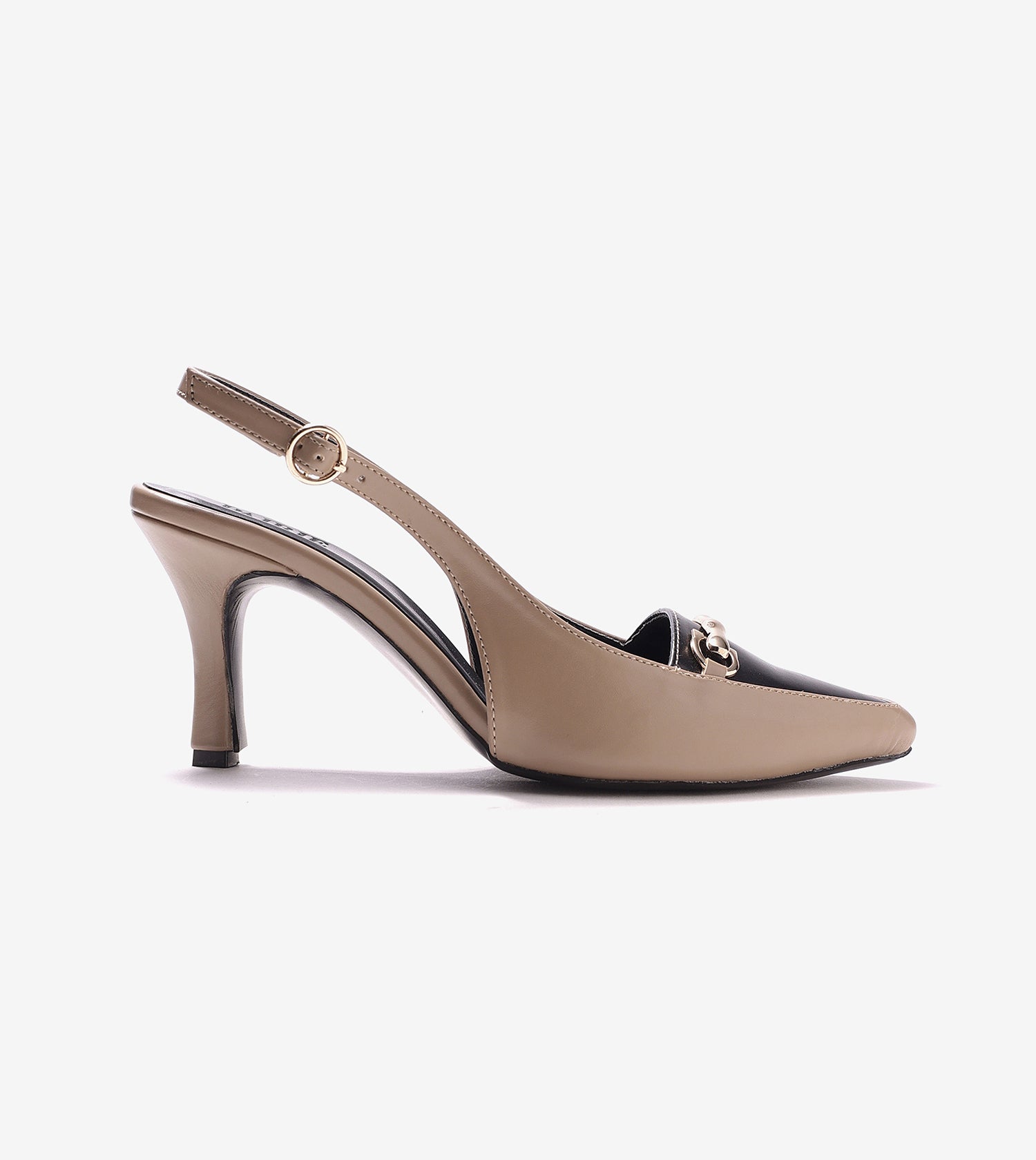 These classic slingback heels get a modern twist with a gleaming gold-tone chunky chain detail. The sophisticated two-toned tan-and-black colorway adds a refined touch, while the pointed-toe design and 3 inch heels instantly elongate your legs and elevate your look. With adjustable slingback straps, you’ll enjoy the perfect fit and all-day comfort.