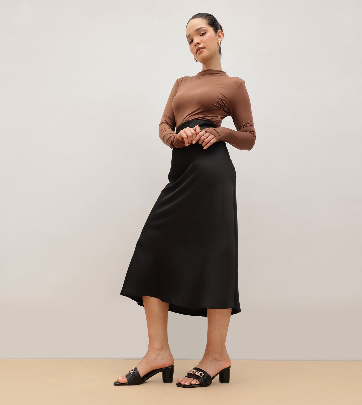 Chic and understated, these heeled sandals elevate a simple silhouette with refined detail. Crafted from soft faux leather in black and set on a round block heel, they’re finished with a golden chain link for an extra touch of charm.