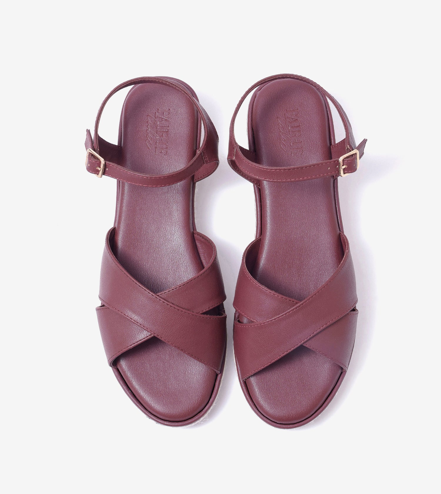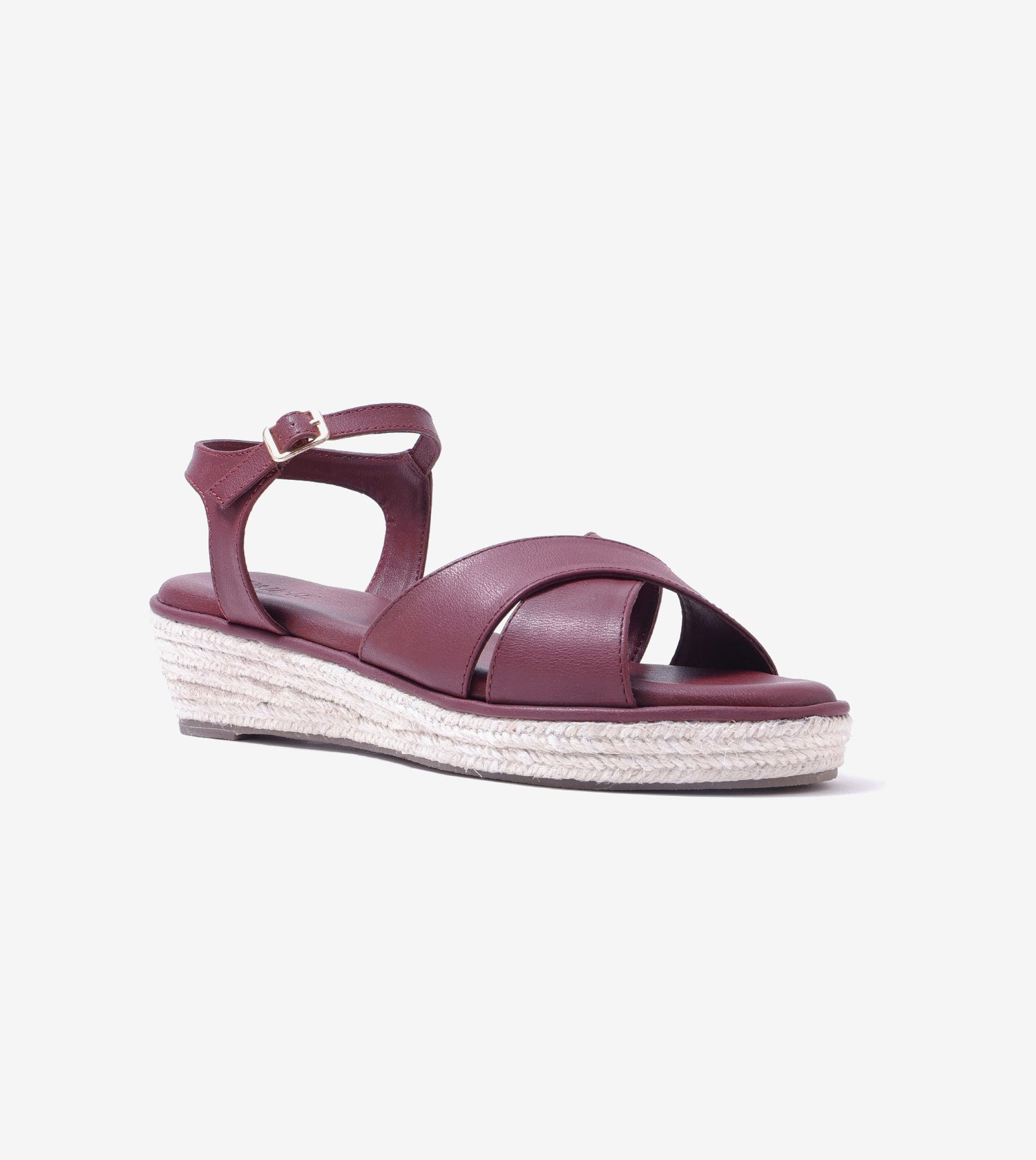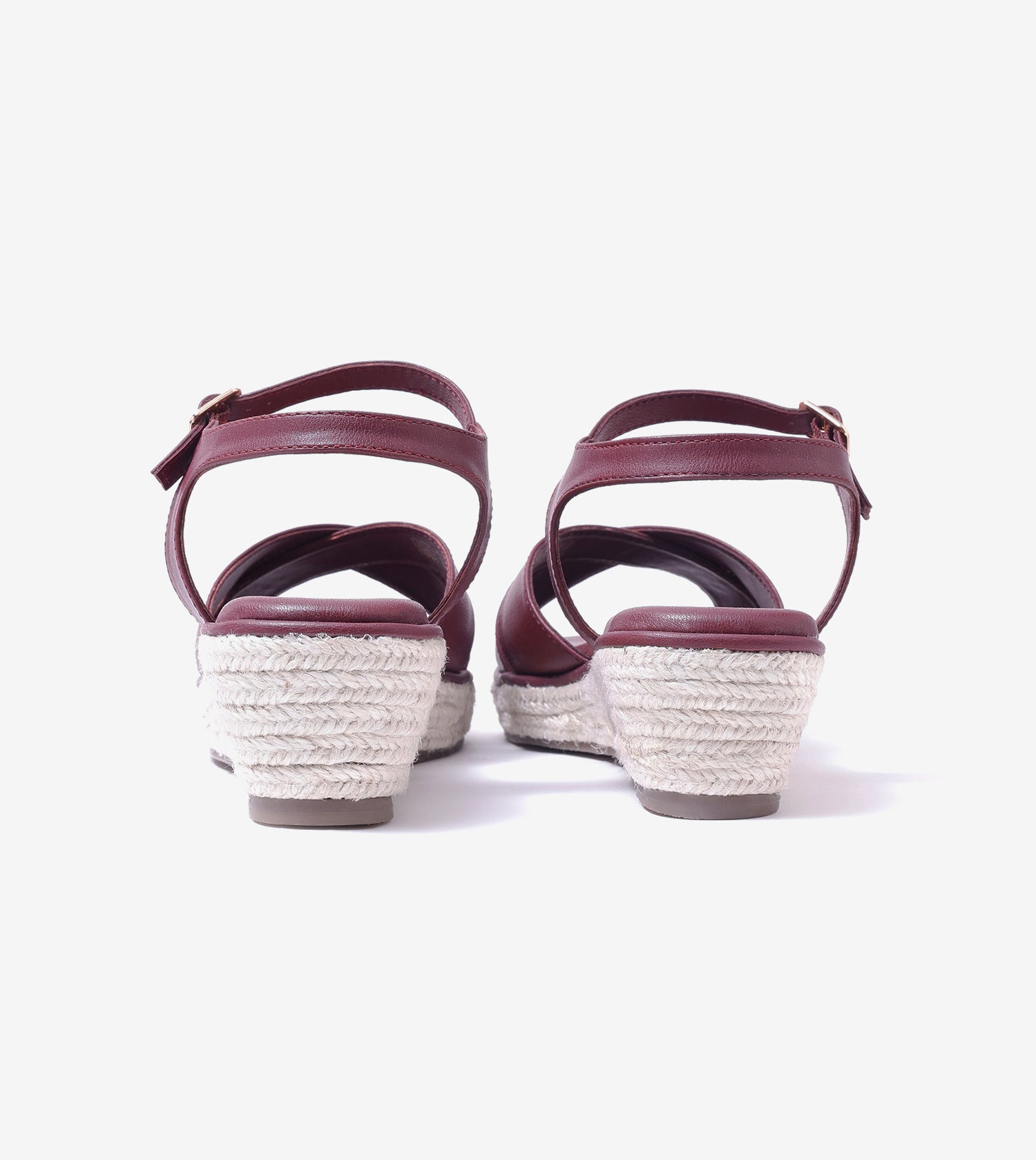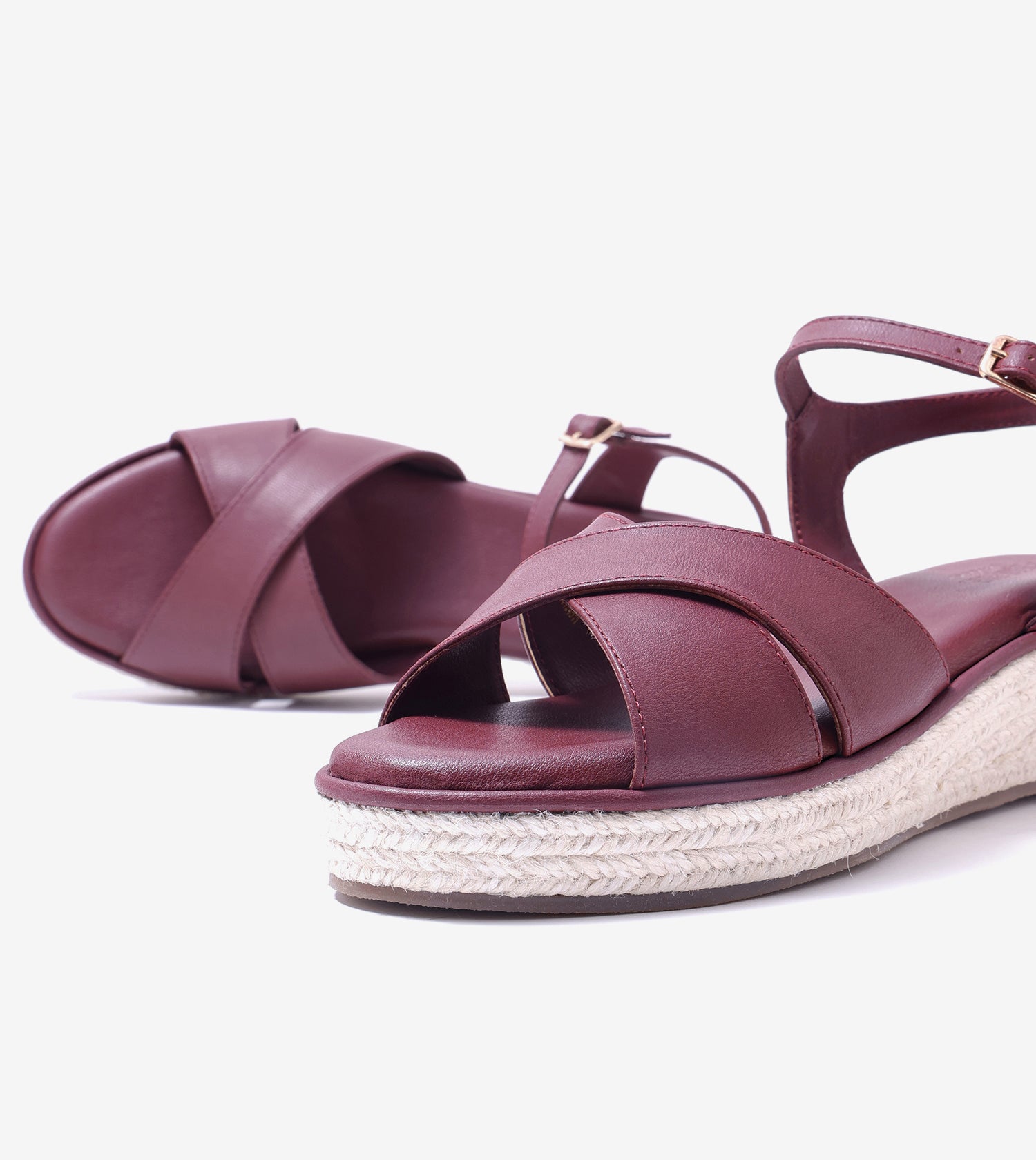Cross-Strap Espadrille Wedges with Ankle Strap - Maroon
