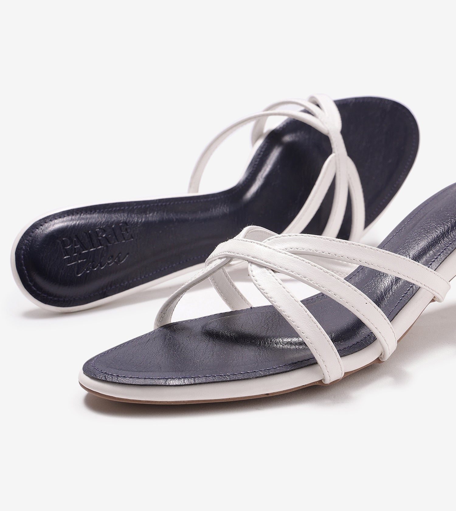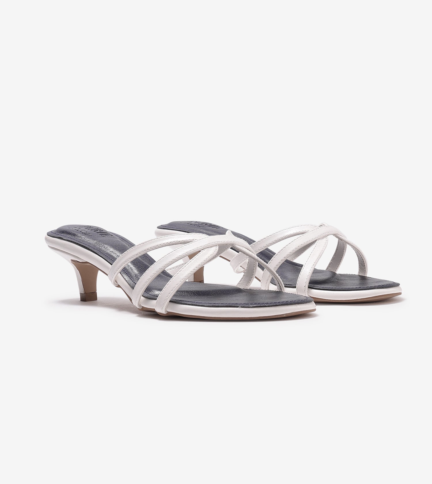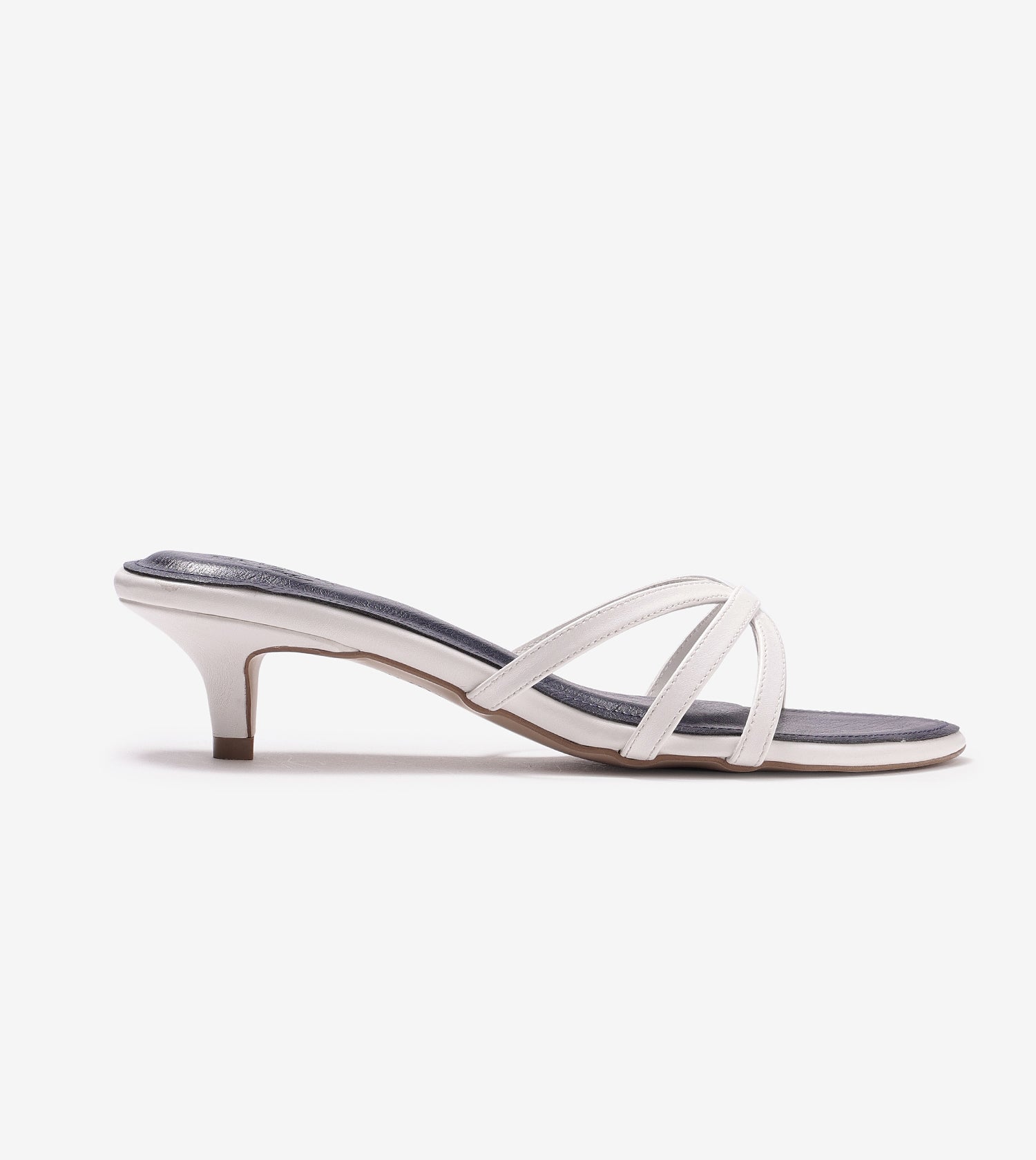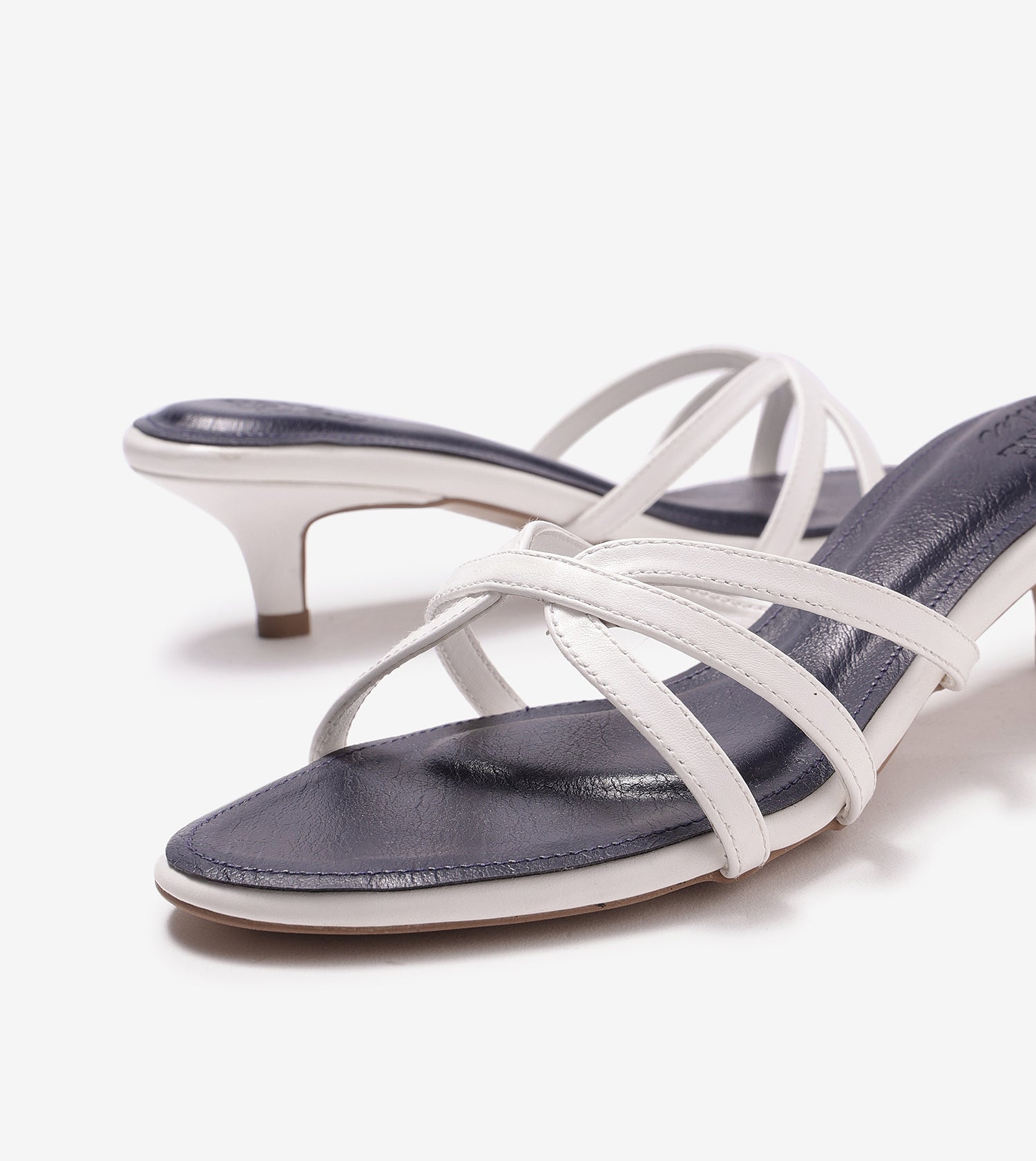 Cross Strap Kitten Mules - Navy Blue