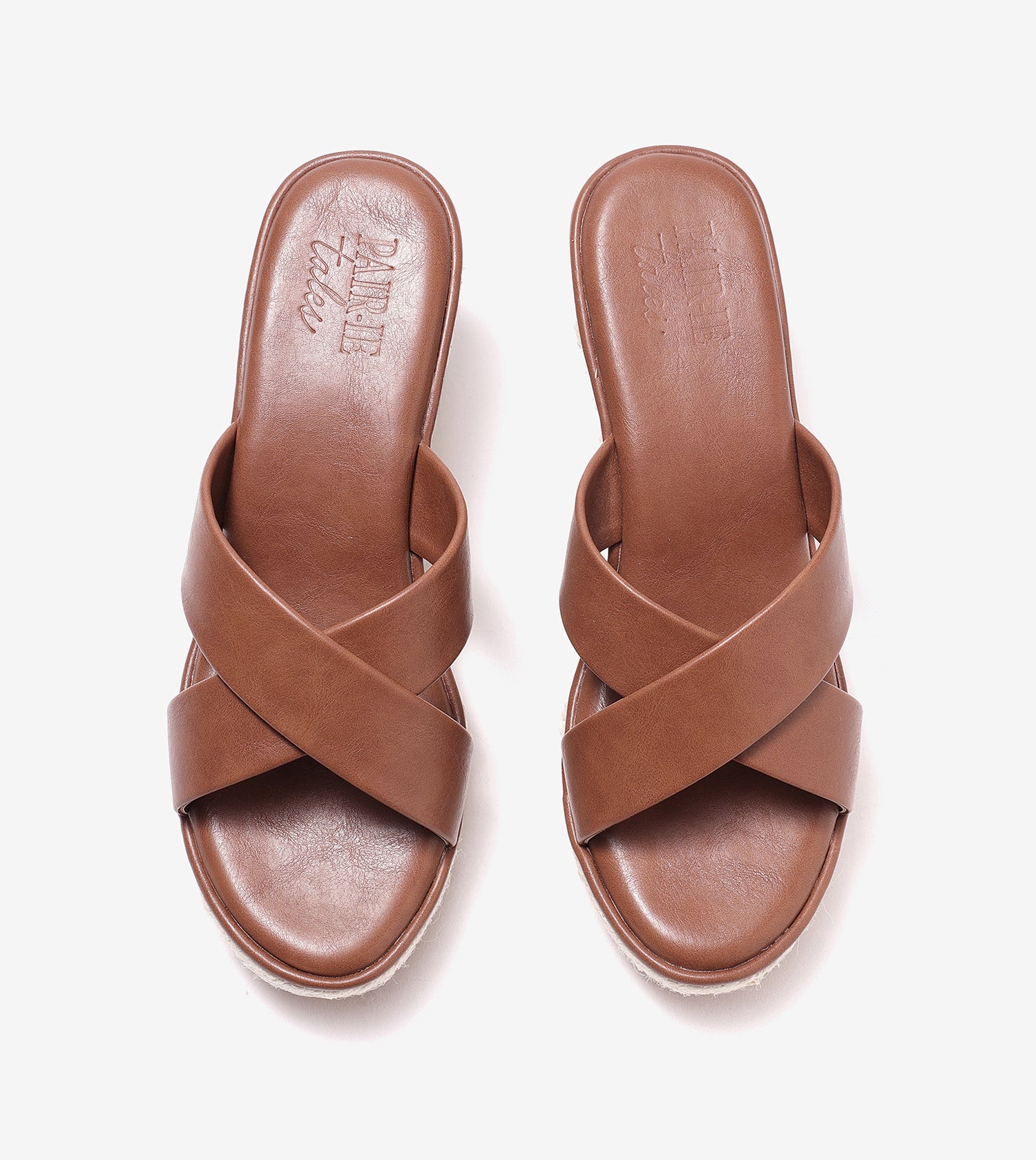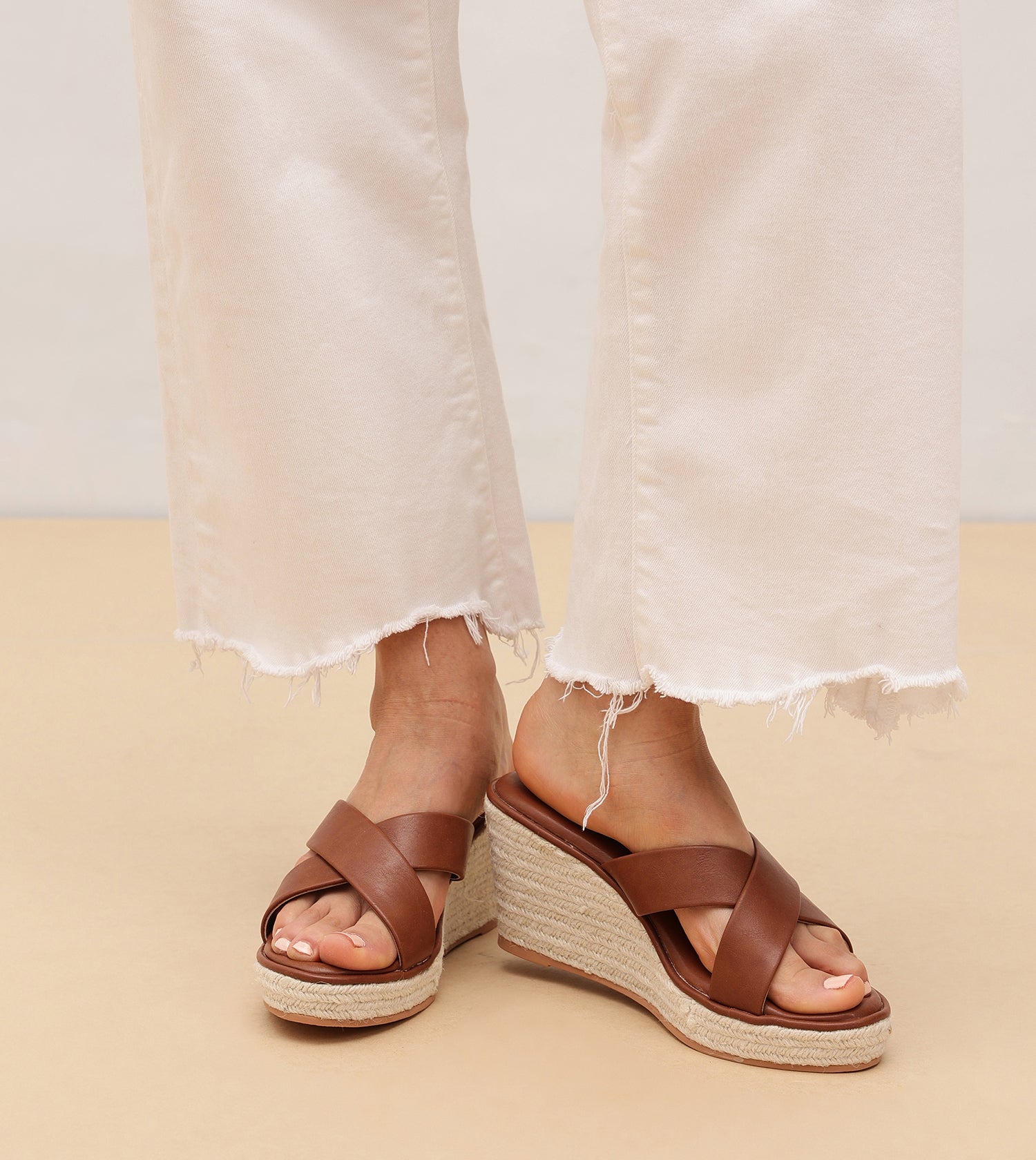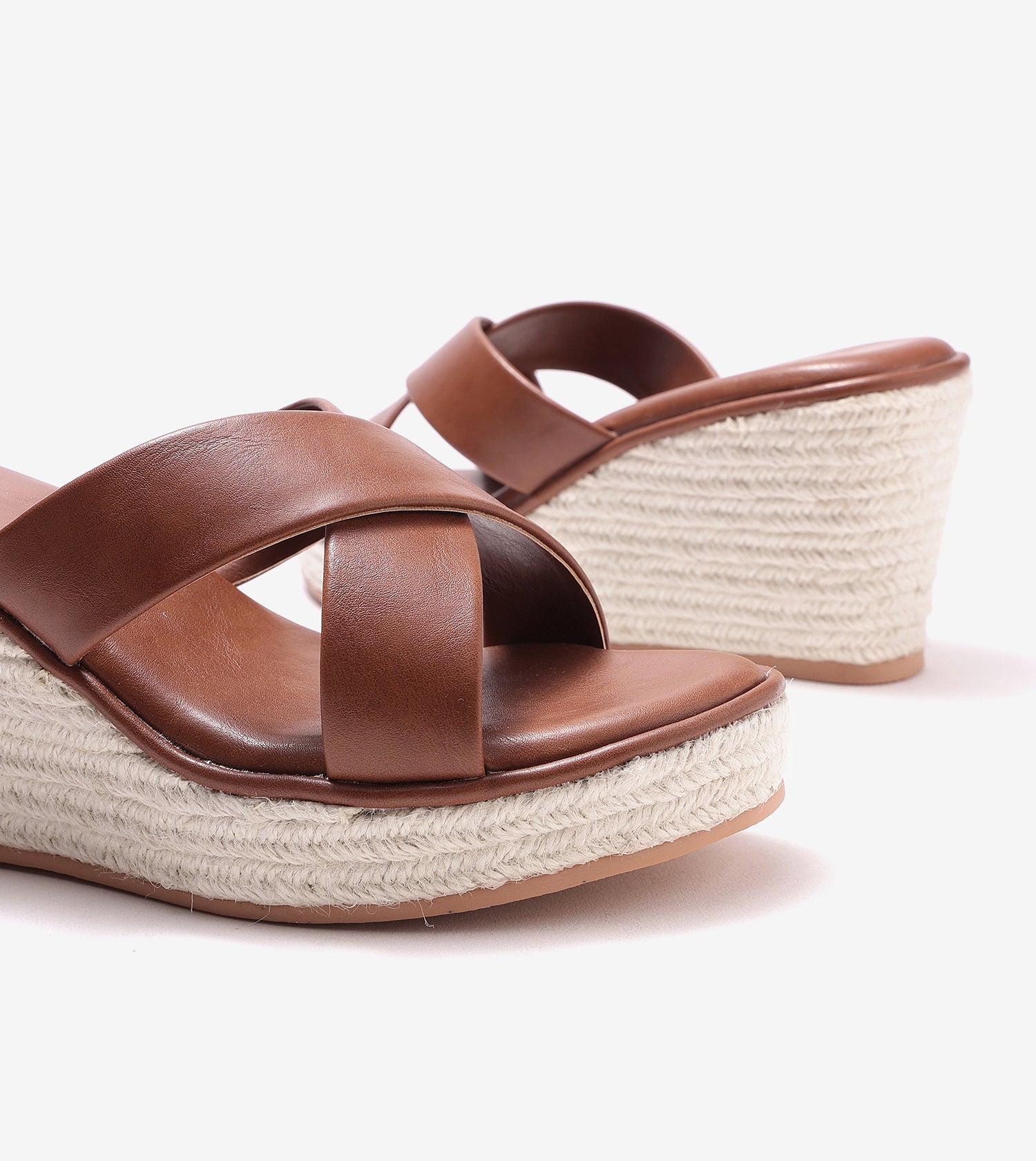 Cross Strap Espadrille Wedges - Brown