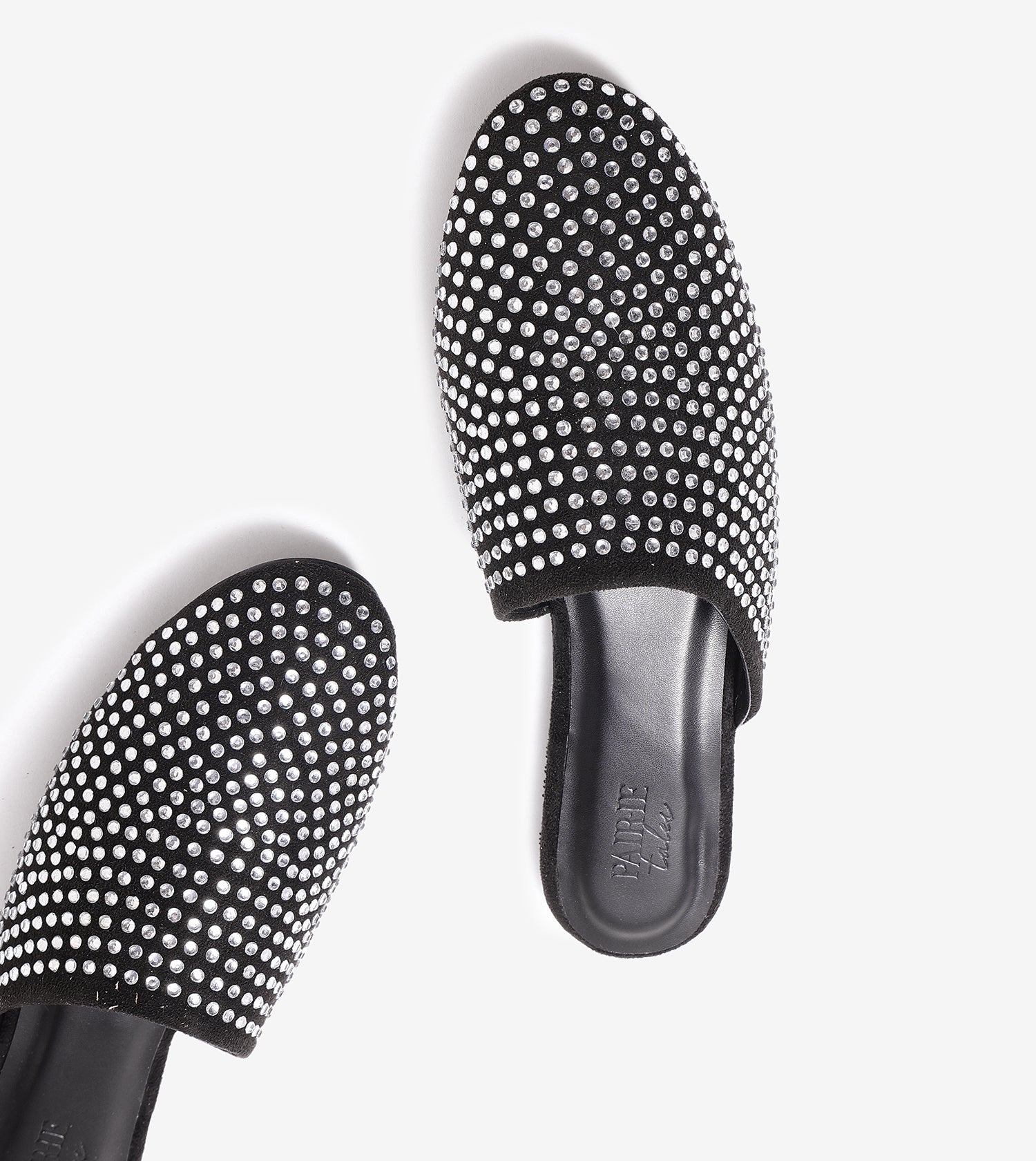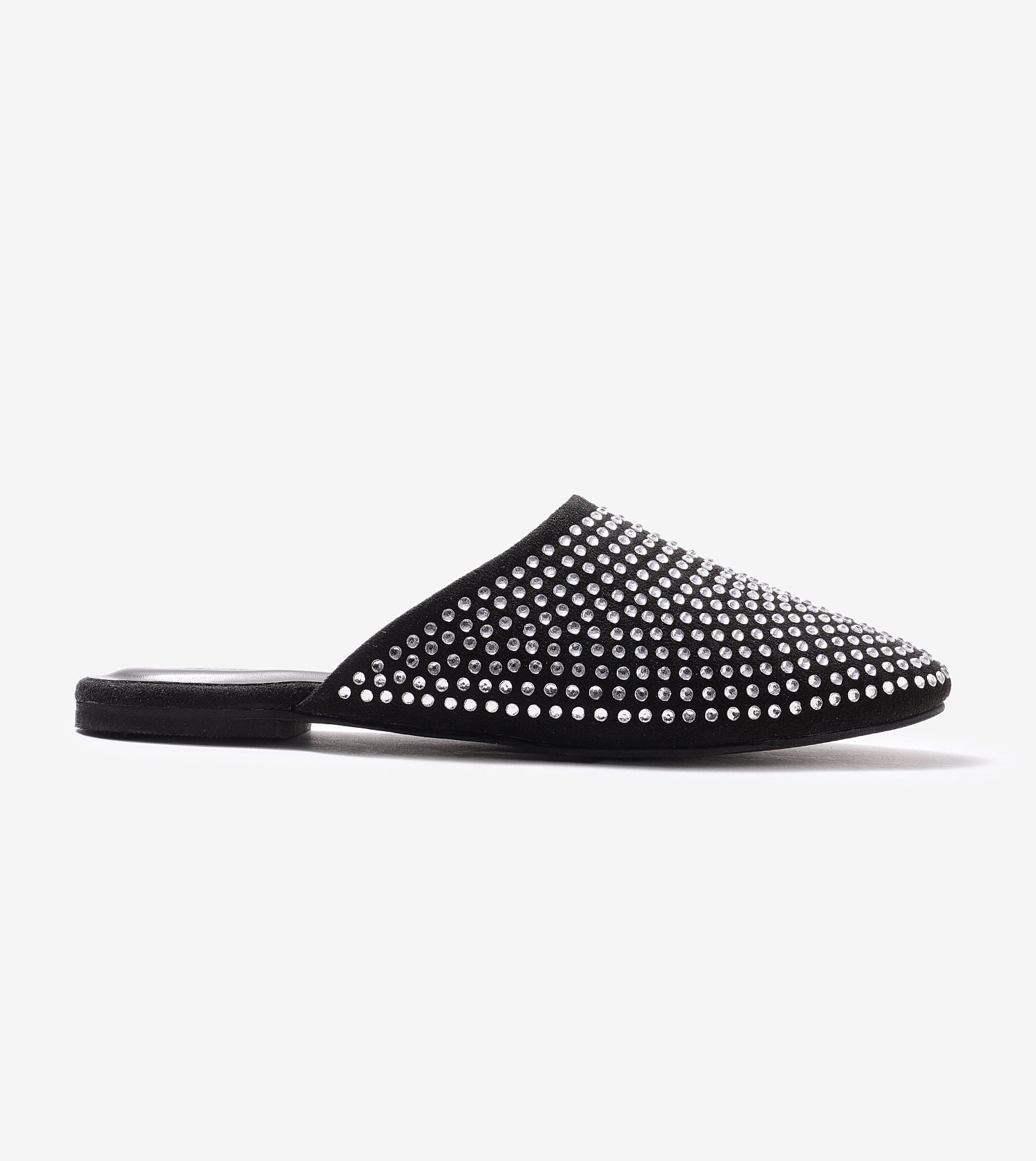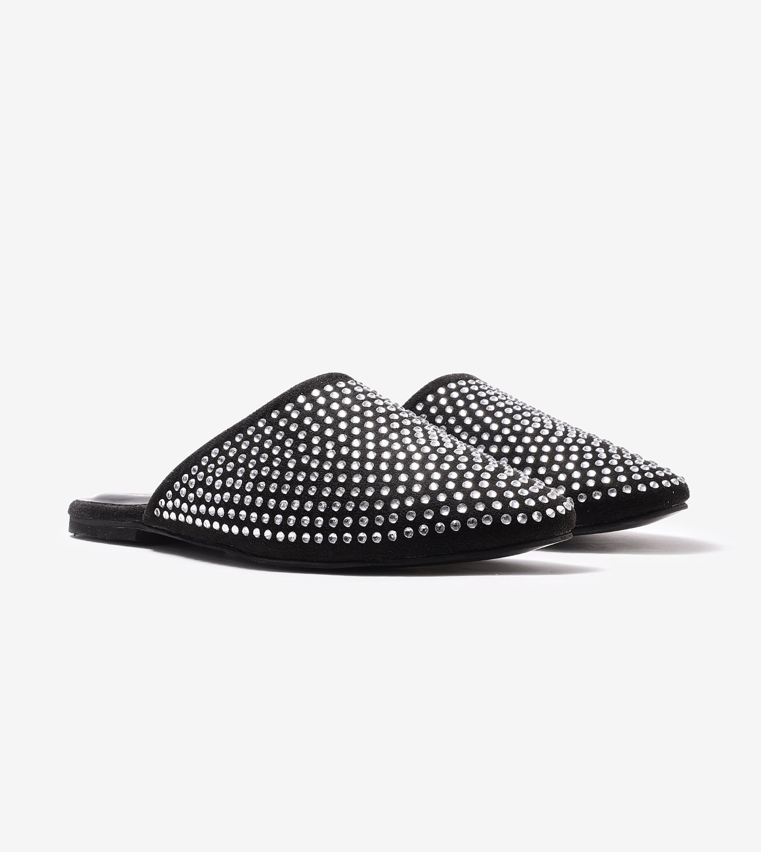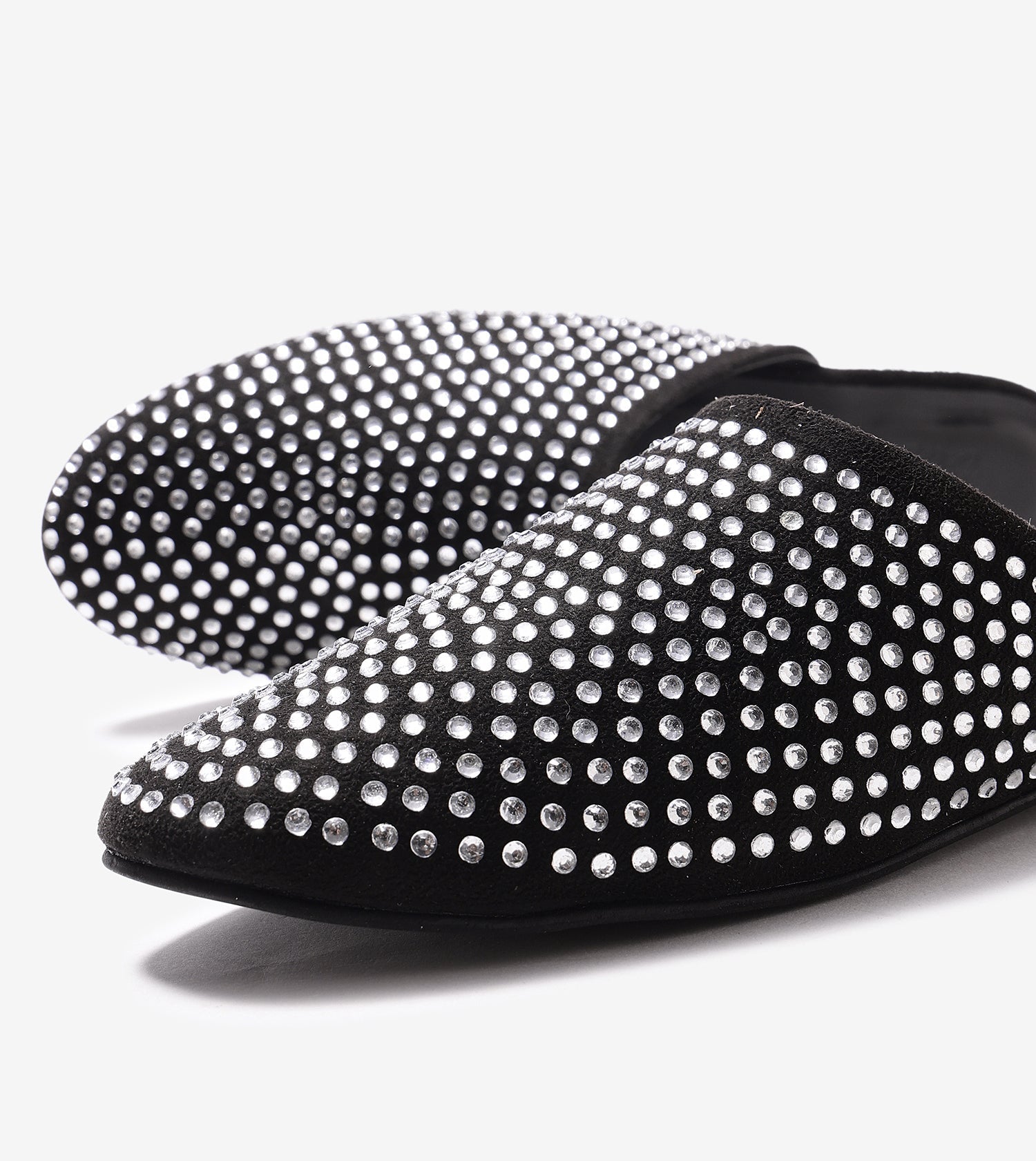 Slide into glam with these black embellished mules. Featuring crystals detailing all over, which is perfect for festive evenings, party looks, or elevating everyday outfits effortlessly.