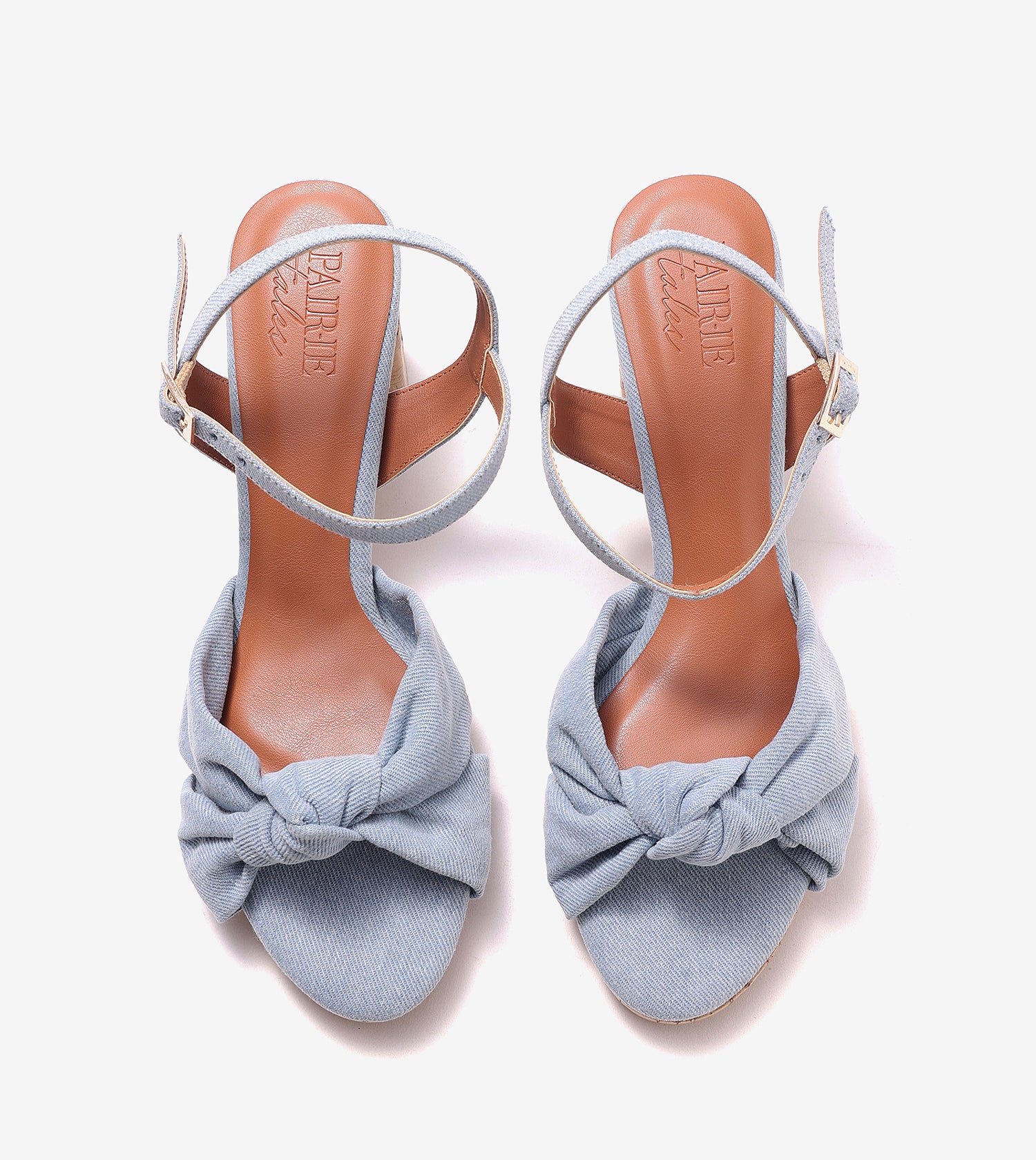 Denim Bow Detail Platform Heeled Sandals - Light Blue