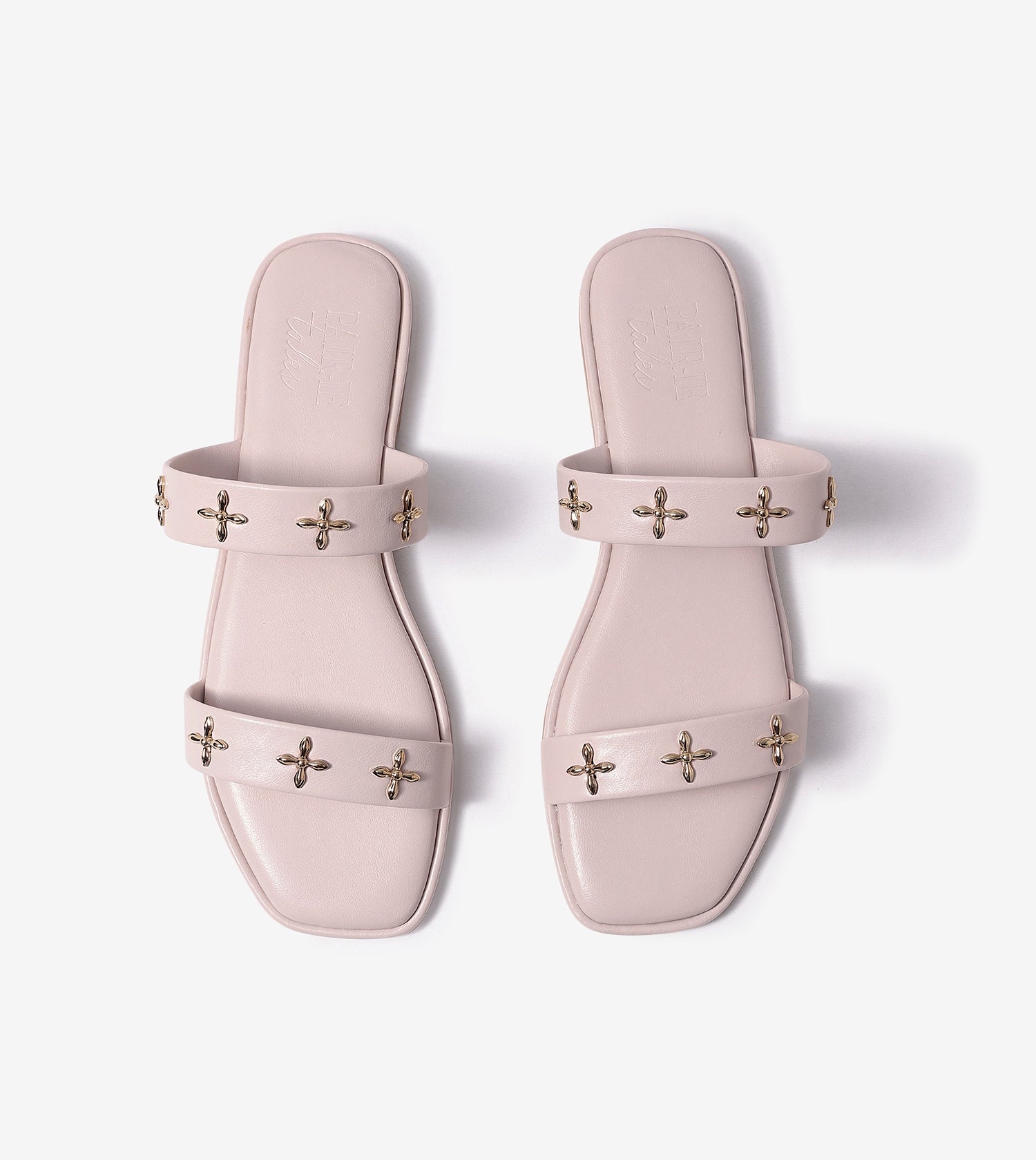 Double Strap Embellished Flat Sandals - Beige