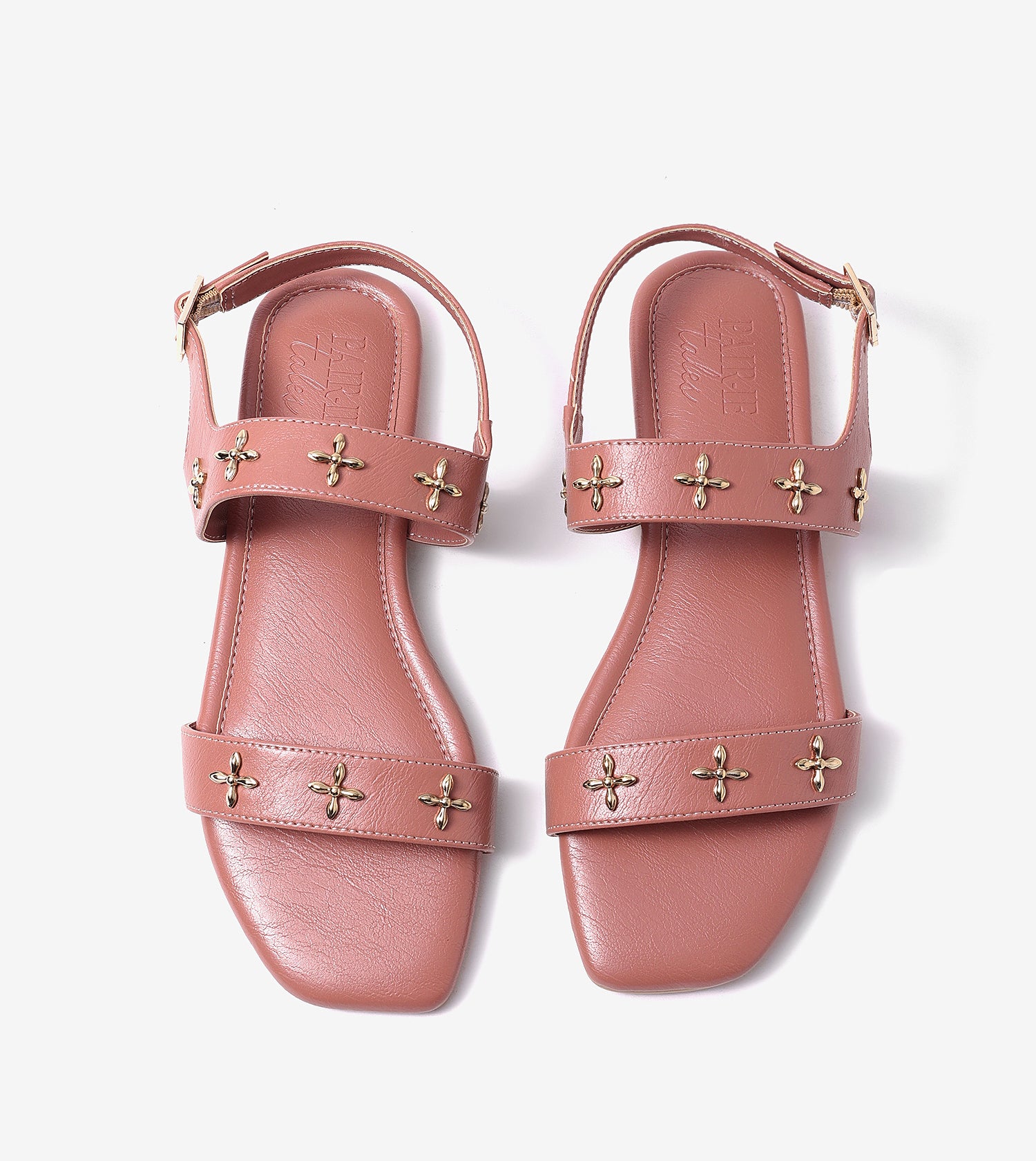 Double Strap Sandals With Metal Adornment - Peach