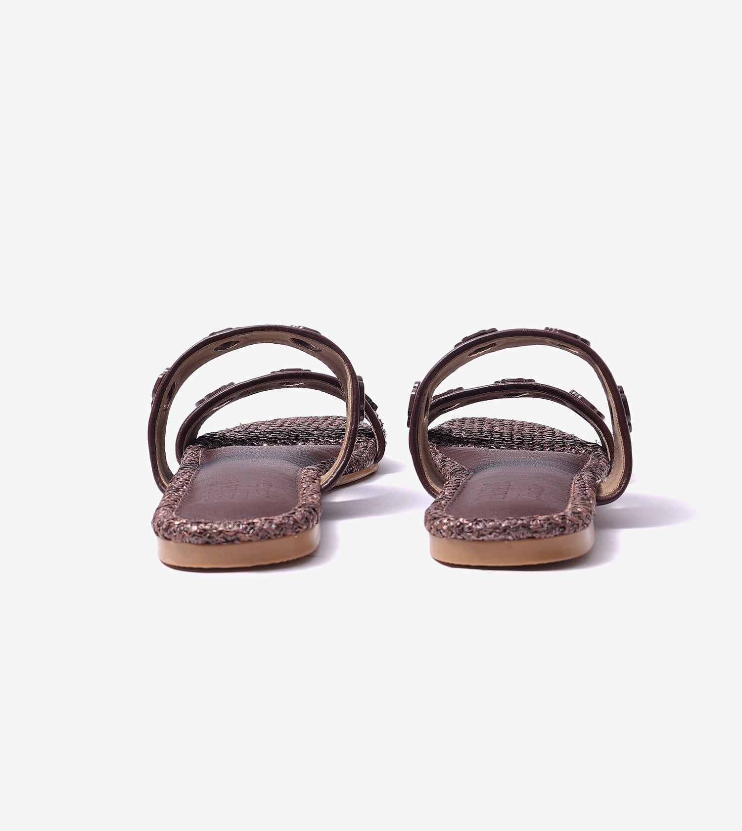 Upgrade your spring wardrobe with these versatile slide sandals, crafted to add a touch of effortless elegance to any outfit. These brown beauties boast a smooth square toe for a chic, feminine vibe, while gilded metallic squares bring a bold, luxurious accent. Pair them with a wrap dress and round sunglasses for a fresh, sophisticated look that’s bound to capture attention.