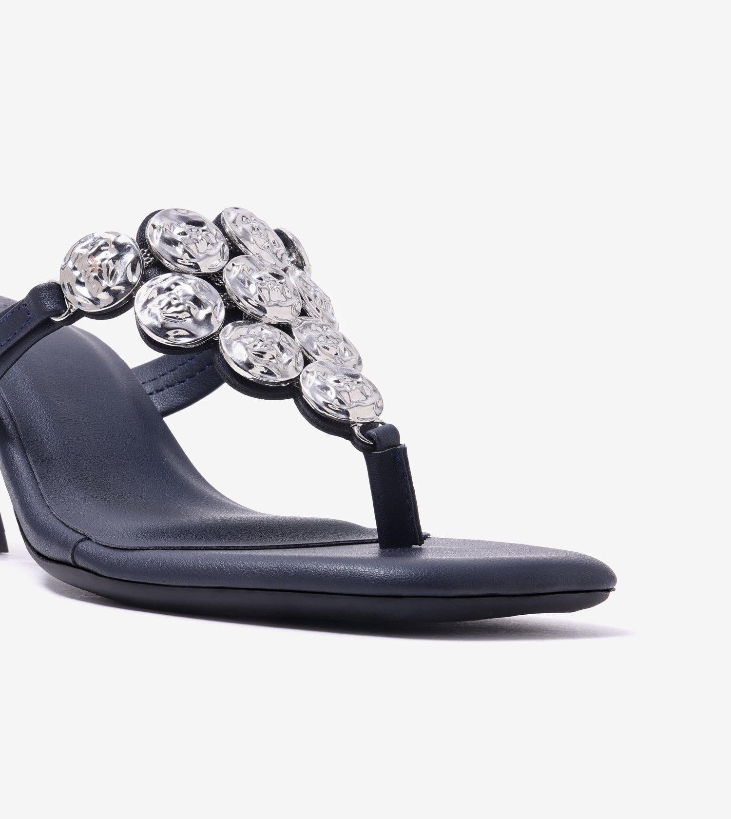 Embellished T-Strap Statement Heels - Indigo Blue