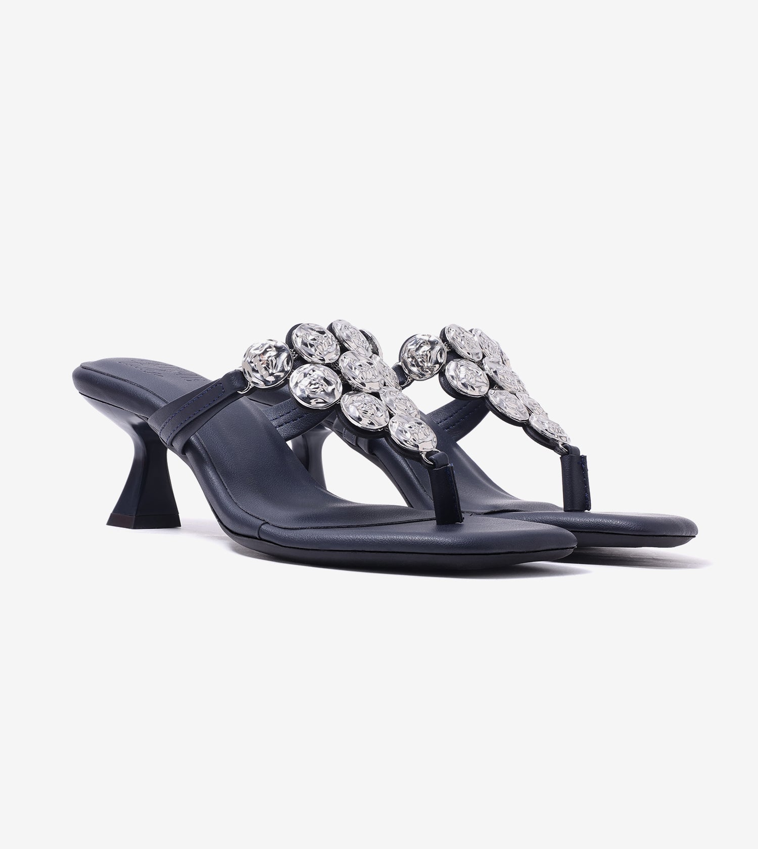 Crafted to make a statement blending sculptural elegance with everyday wearability. The decorative metallic detailing adds a refined, festive touch, while the gently flared heel offers stability and comfort with every step. Designed to elevate both occasion and semi-casual looks, this pair balances trend-led design with thoughtful construction for effortless all-day to evening transitions.