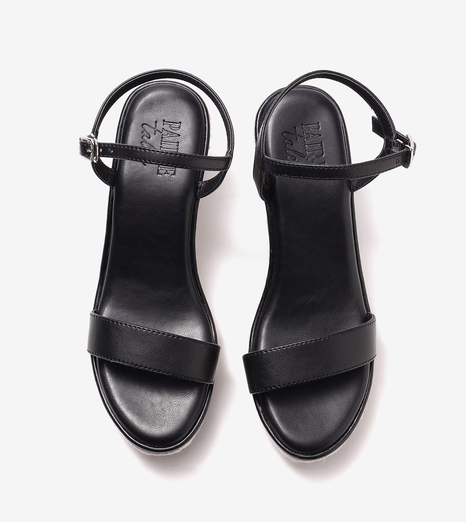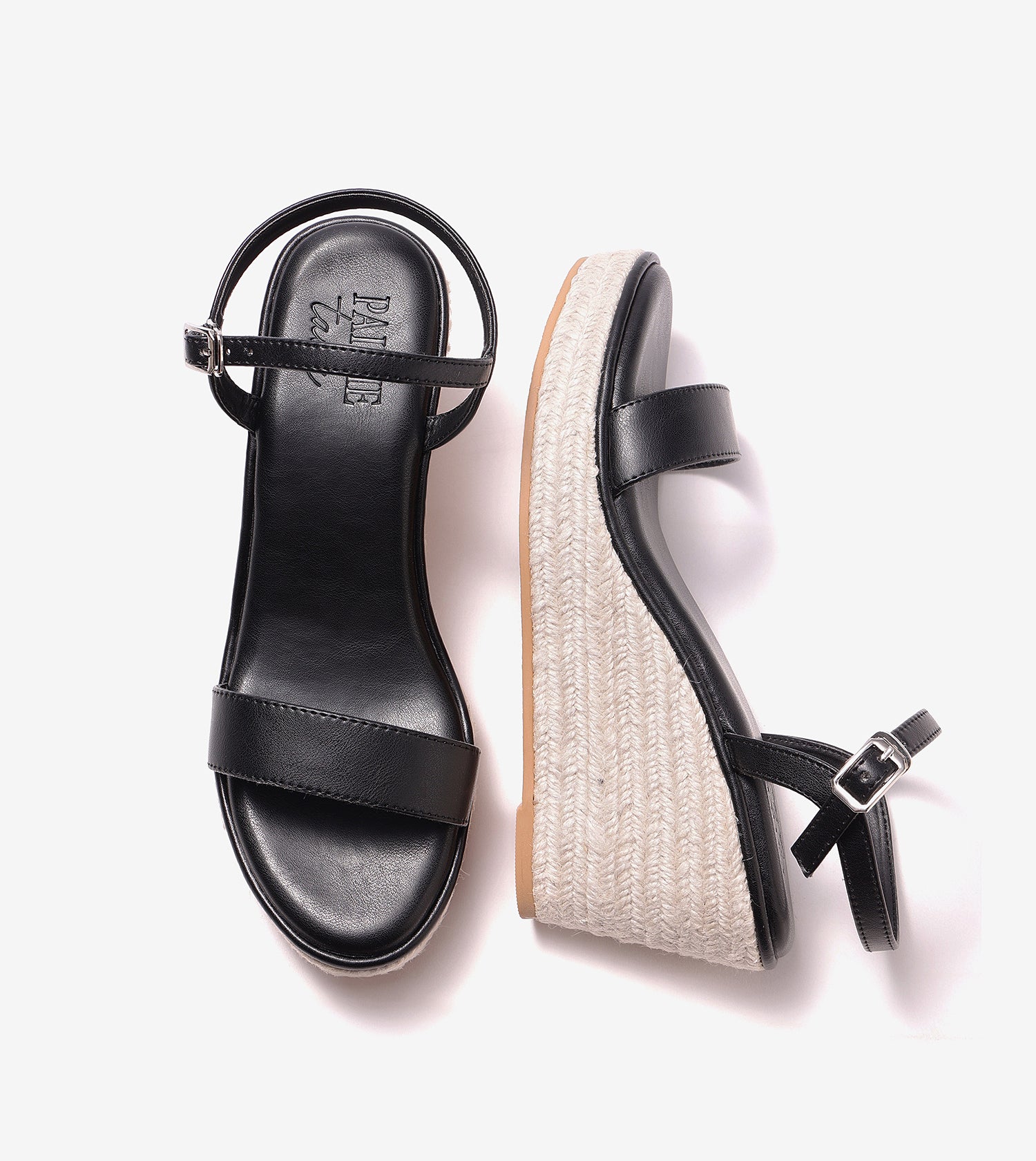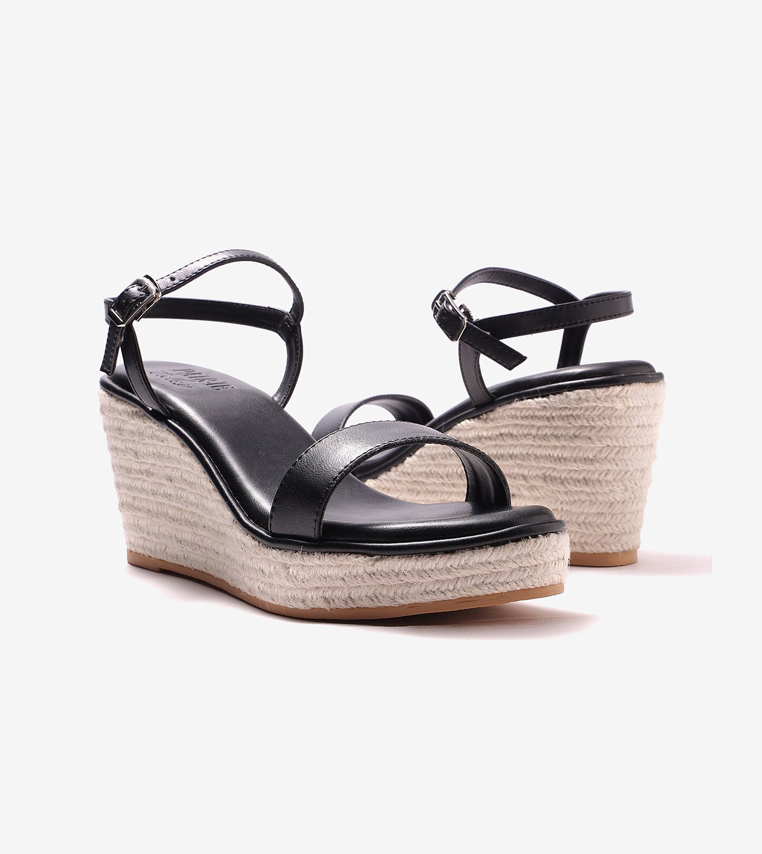 Sculpted in a deep, inky black, these espadrille wedges redefine understated luxury. The structured ankle strap offers a secure, tailored fit, while the cushioned sole ensures comfort with every stride. Designed to elongate and empower, their sleek silhouette and tonal depth make them a statement in elevated simplicity.