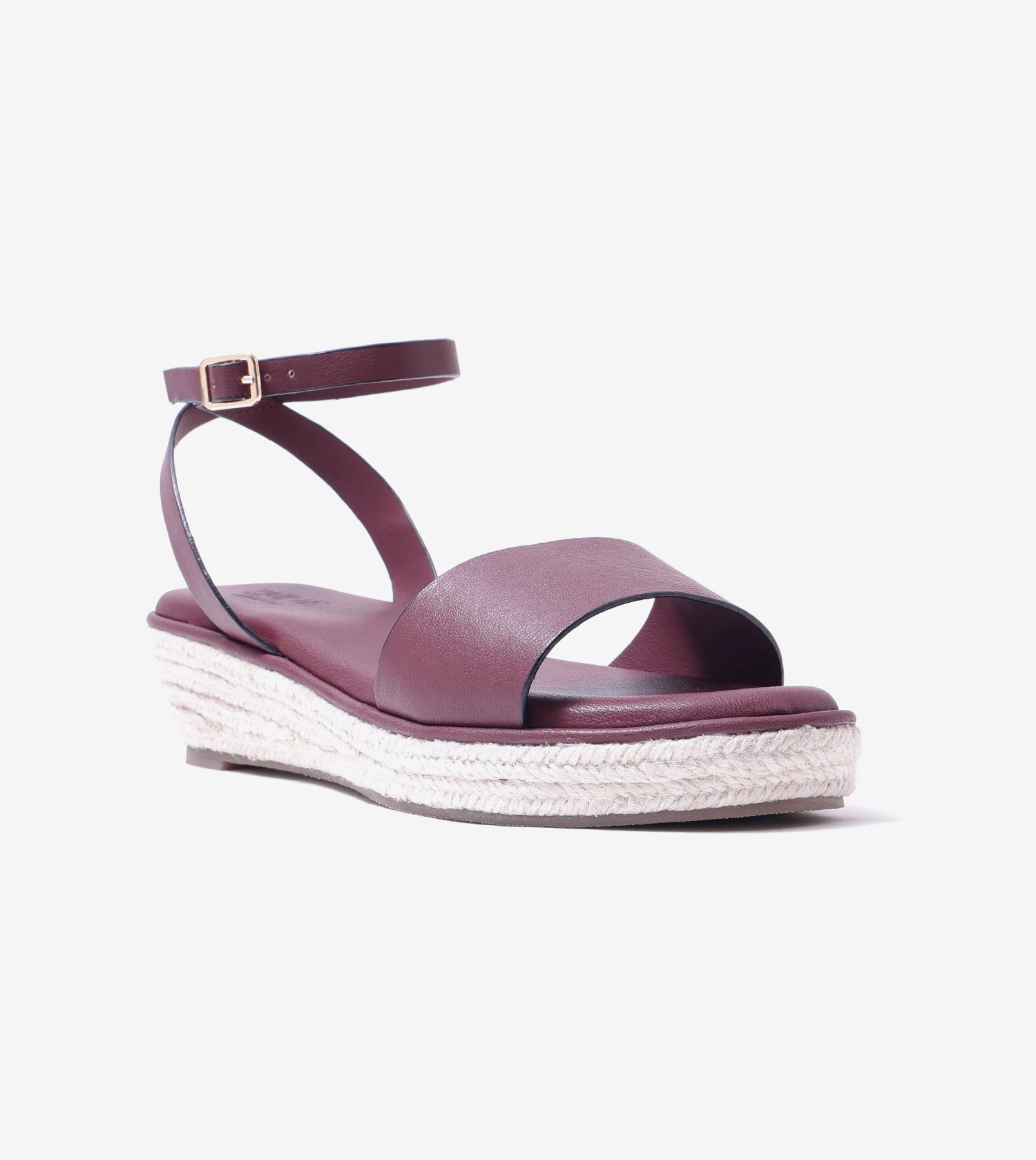 This wedge features wide, clean-lined straps that offer balanced coverage and a secure fit. The elevated platform sole is wrapped in a textured espadrille-style midsole, adding dimension while maintaining a lightweight profile. An adjustable ankle strap provides stability and structure, complementing the streamlined upper. Designed to combine casual ease with architectural simplicity, this silhouette delivers comfort, lift, and effortless versatility for everyday wear.