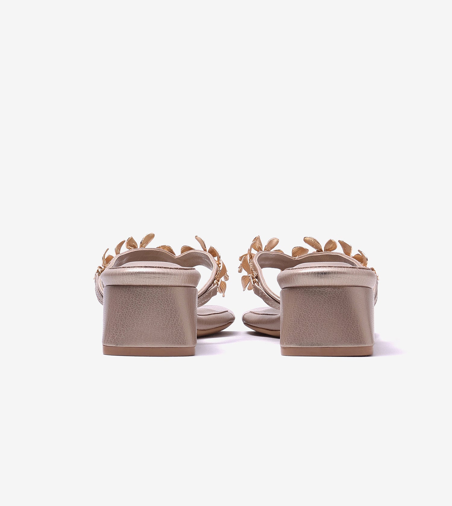 This sandal features a refined sculpted floral accents that add a touch of charm and femininity. The structured strap offers a secure fit, while the block heel provides subtle elevation with lasting comfort. Finished with clean lines and smooth contours, this pair blends decorative detailing with effortless wearability, making it suitable for both special occasions and everyday styling.