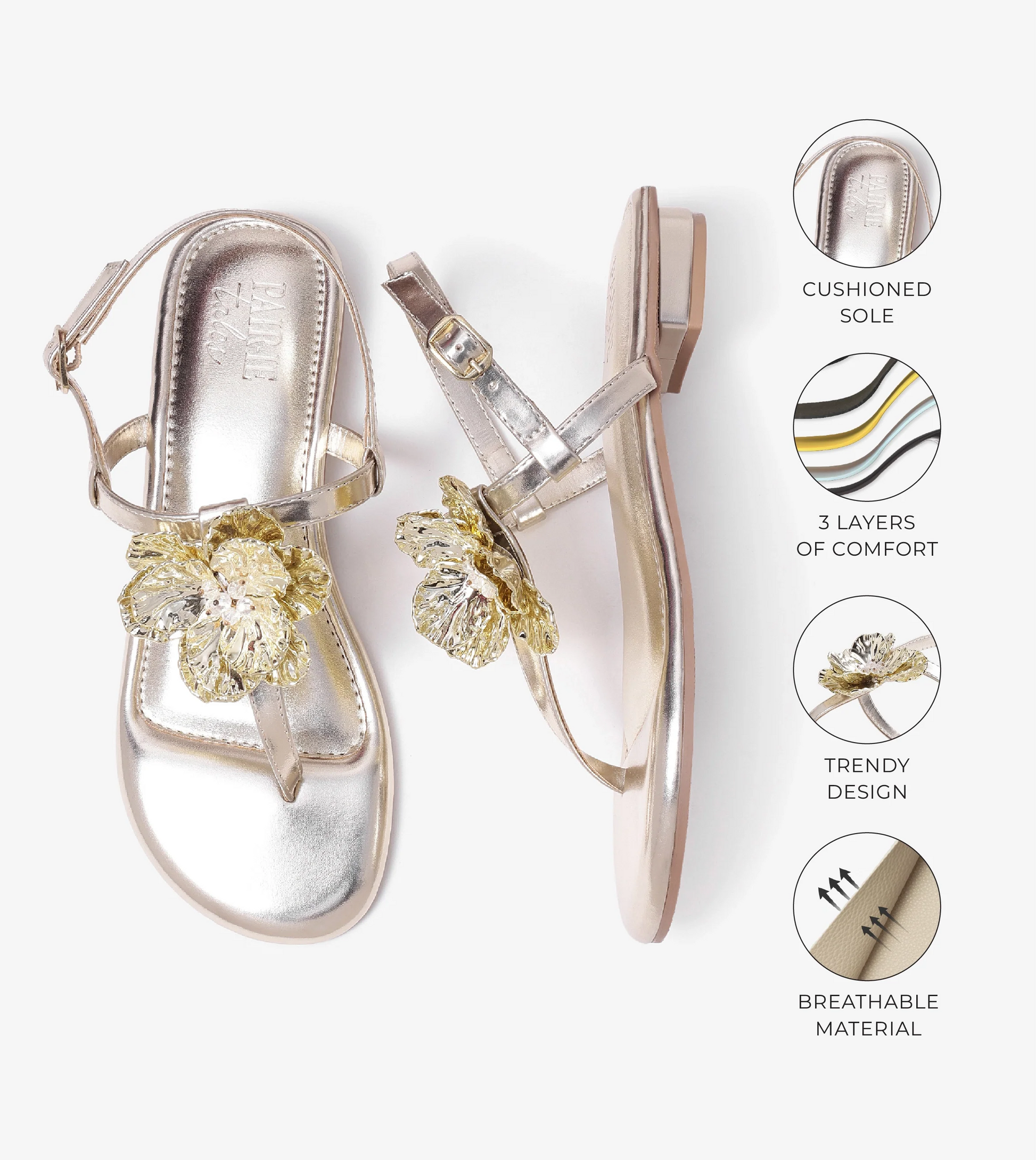 Statement floral embellishment flats soft cushioned footbed and smooth inner lining provide lasting comfort ensures effortless movement throughout the day. Delicate strap detailing offers a secure fit, making this pair perfect for long hours without compromising on style. A versatile silhouette that transitions seamlessly from casual outings to dressed-up occasions.