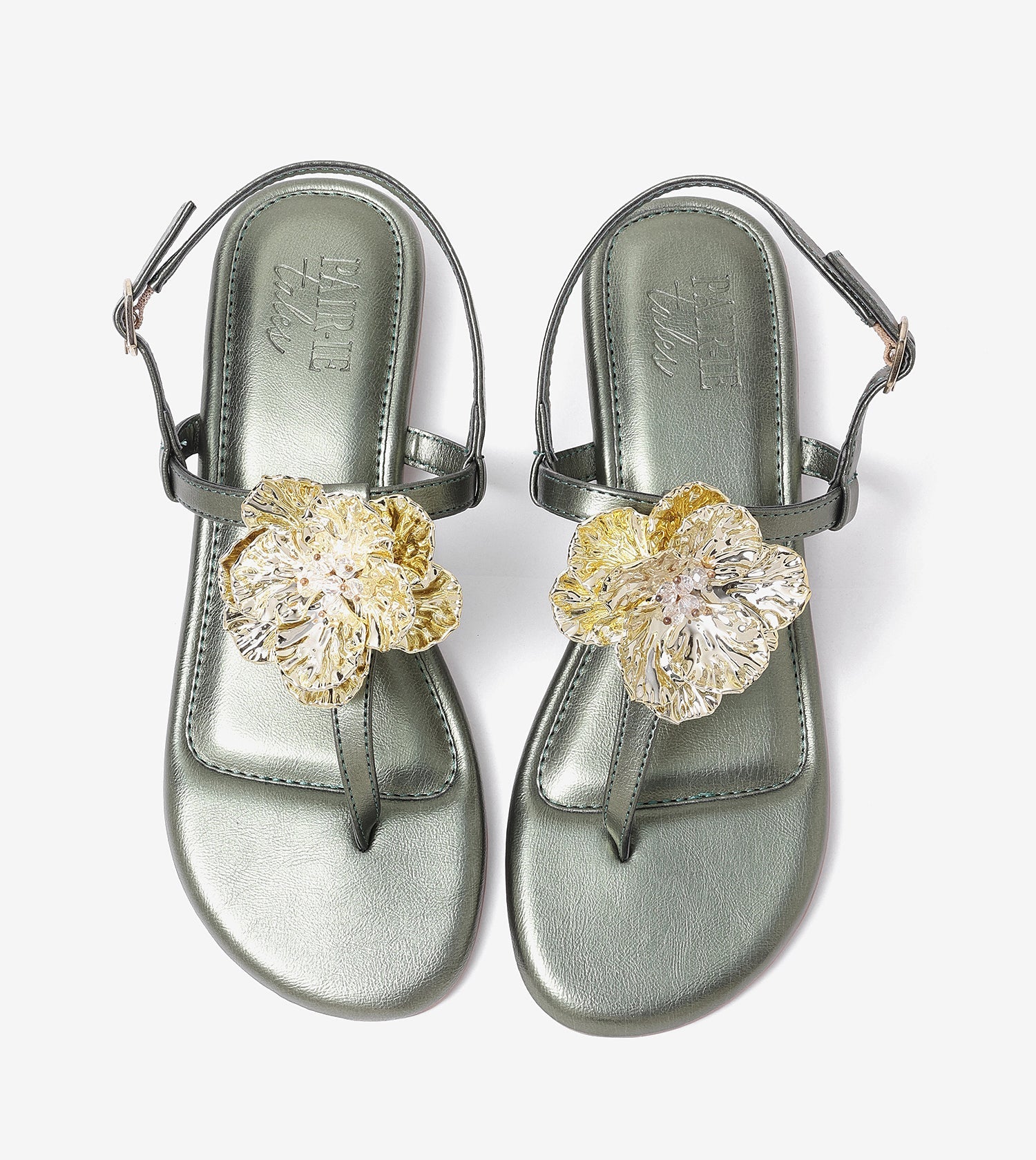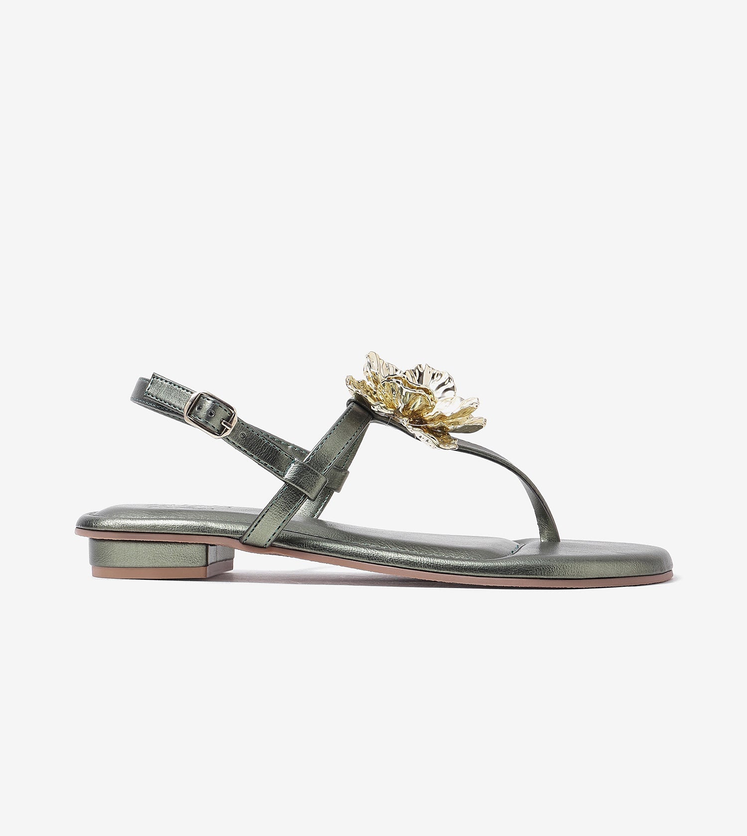 Statement floral embellishment flats soft cushioned footbed and smooth inner lining provide lasting comfort ensures effortless movement throughout the day. Delicate strap detailing offers a secure fit, making this pair perfect for long hours without compromising on style. A versatile silhouette that transitions seamlessly from casual outings to dressed-up occasions.