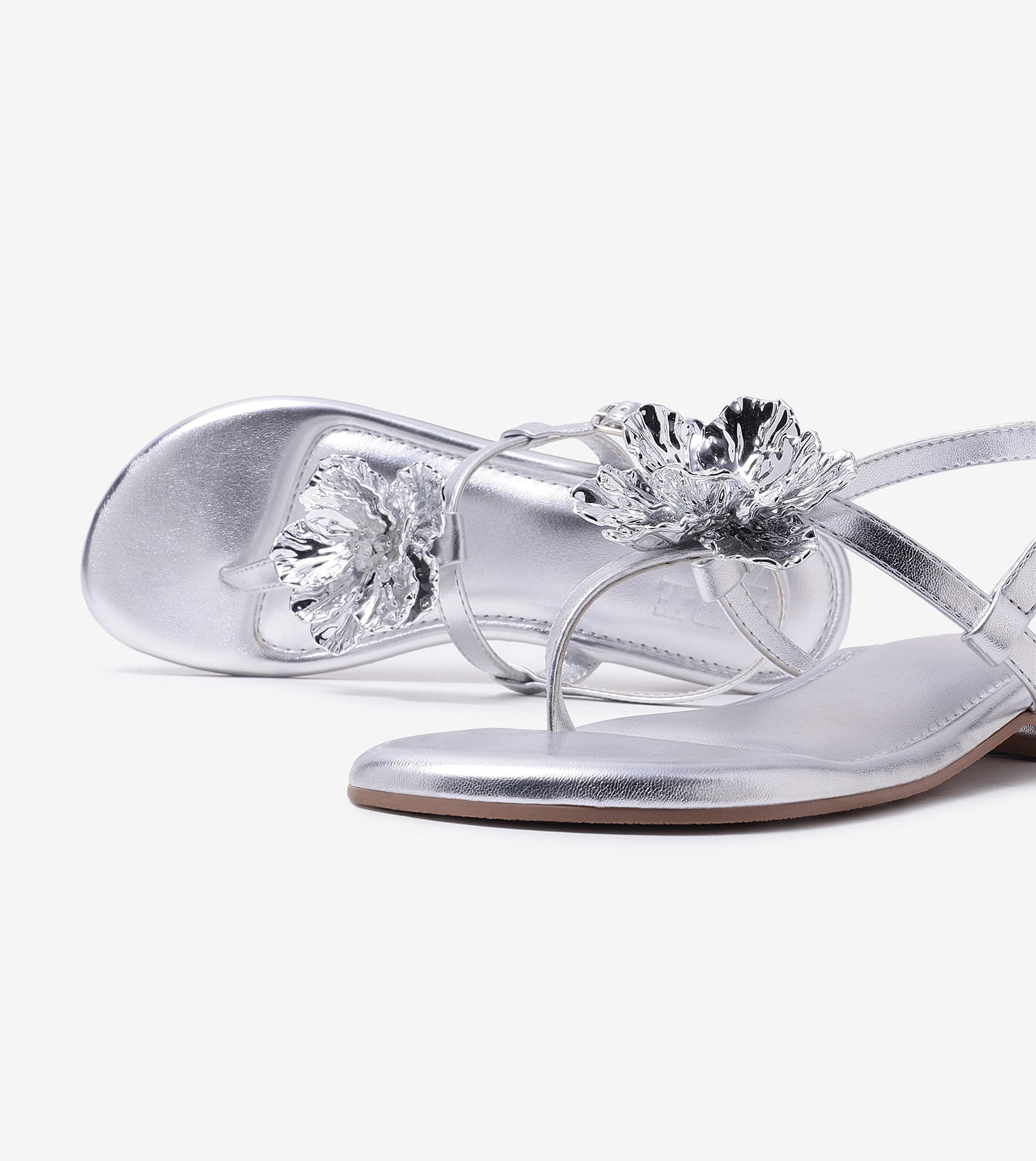 Floral Flats Sandal - Silver