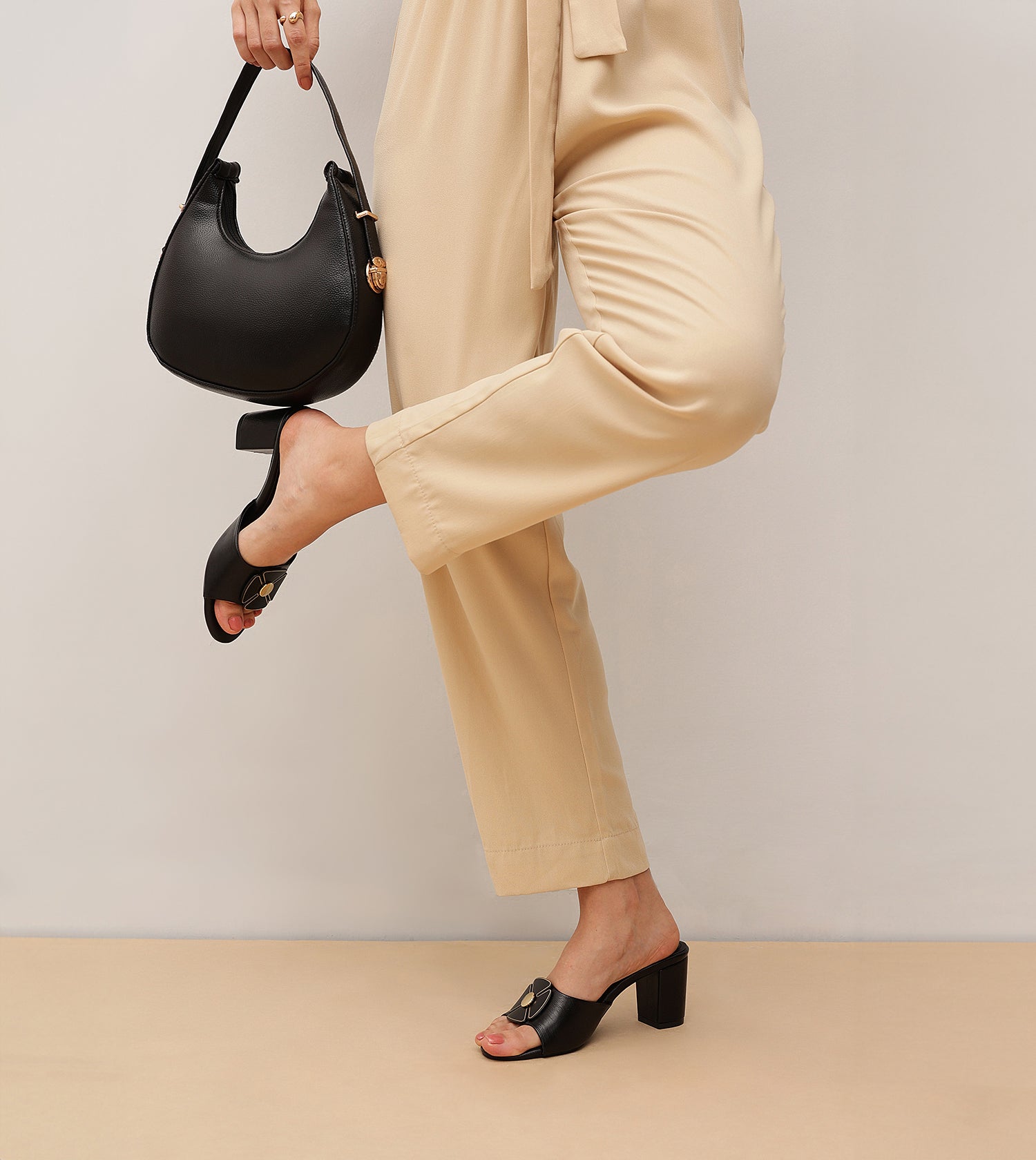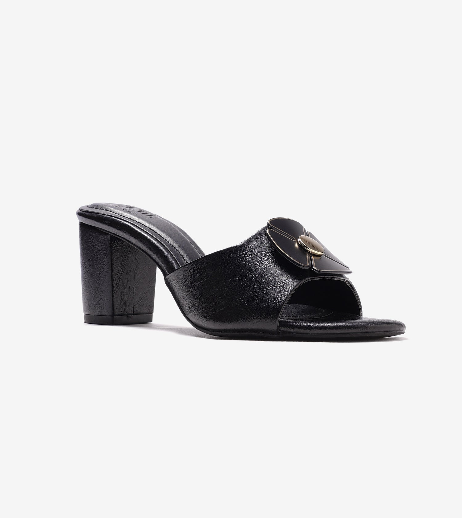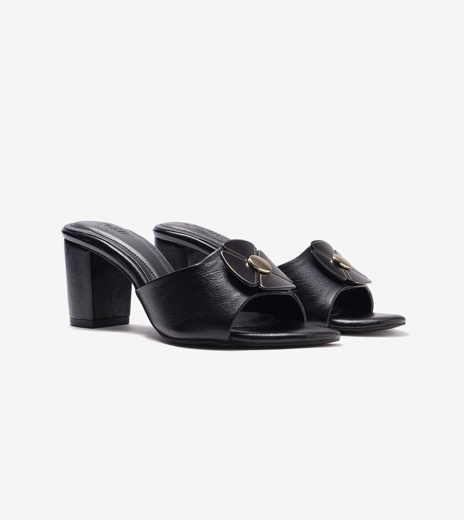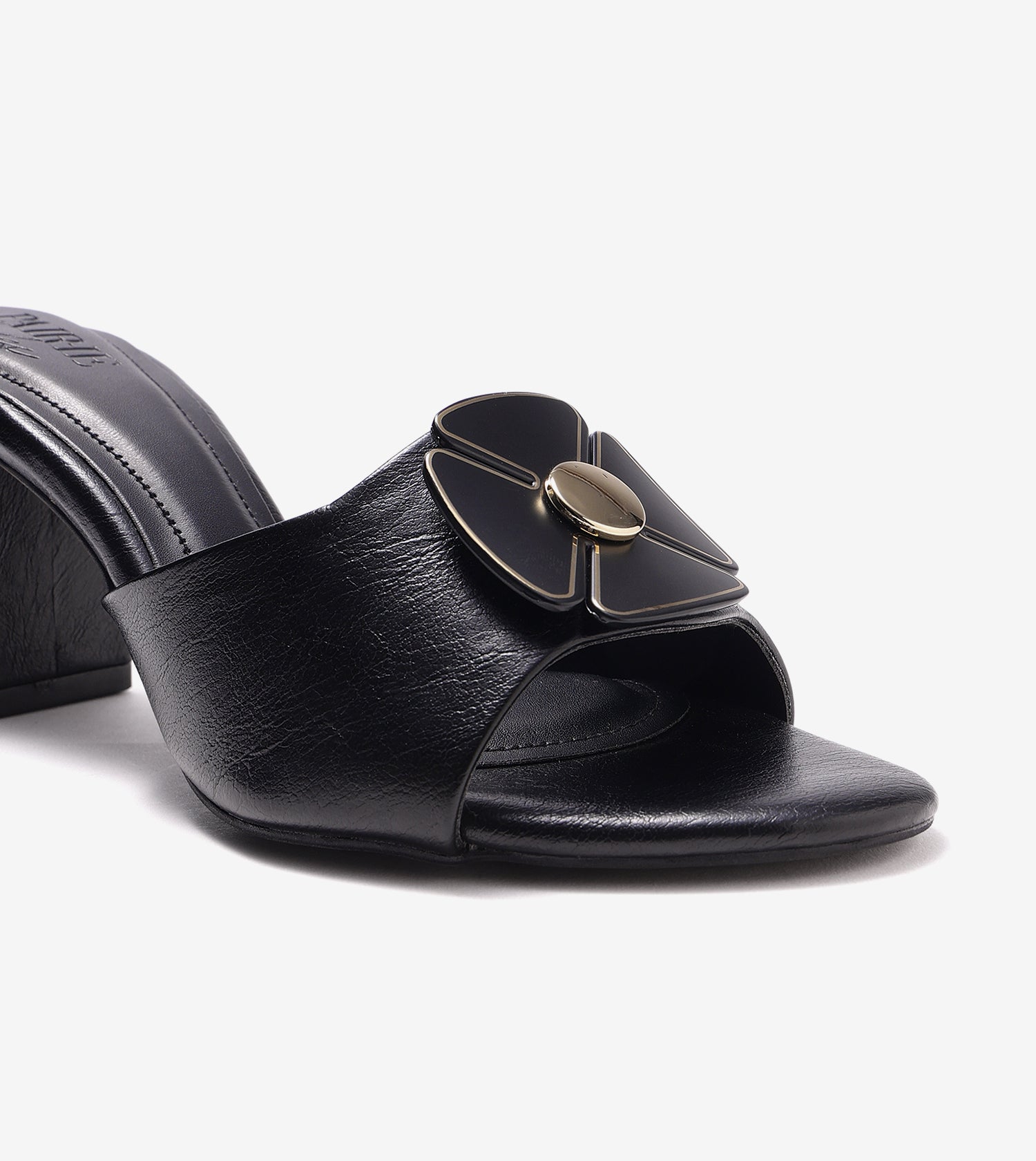 These block-heel mules make a bold statement with thick, eye-catching straps adorned with a floral trim. The sleek round-toe silhouette adds a contemporary twist to a timeless design. In classic black, this pair seamlessly complements any wardrobe, offering versatility for any occasion. The sturdy block heels provide a flattering lift while ensuring all-day comfort.