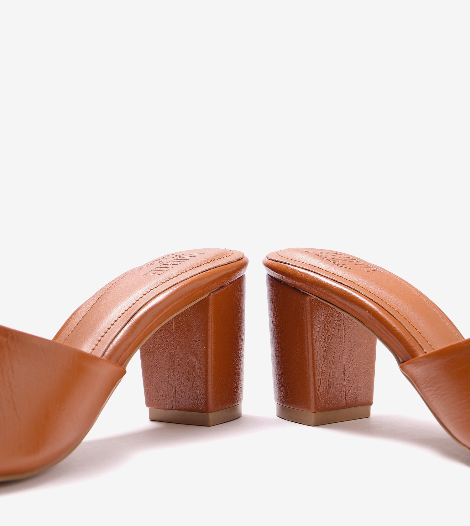 Turn heads with a bold pop of color - these tan heeled sandals are designed to make an entrance. Detailed with floral cutout trims, this pair strikes the perfect balance between striking and sophisticated. Step into all-day style with ease and impact.