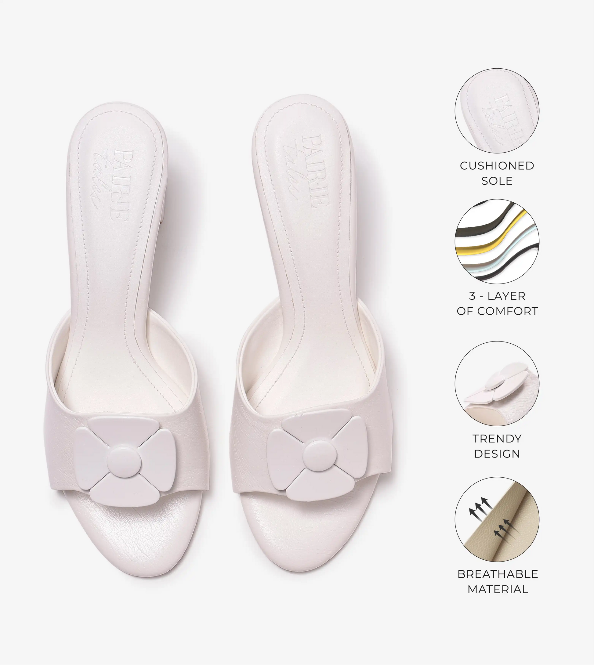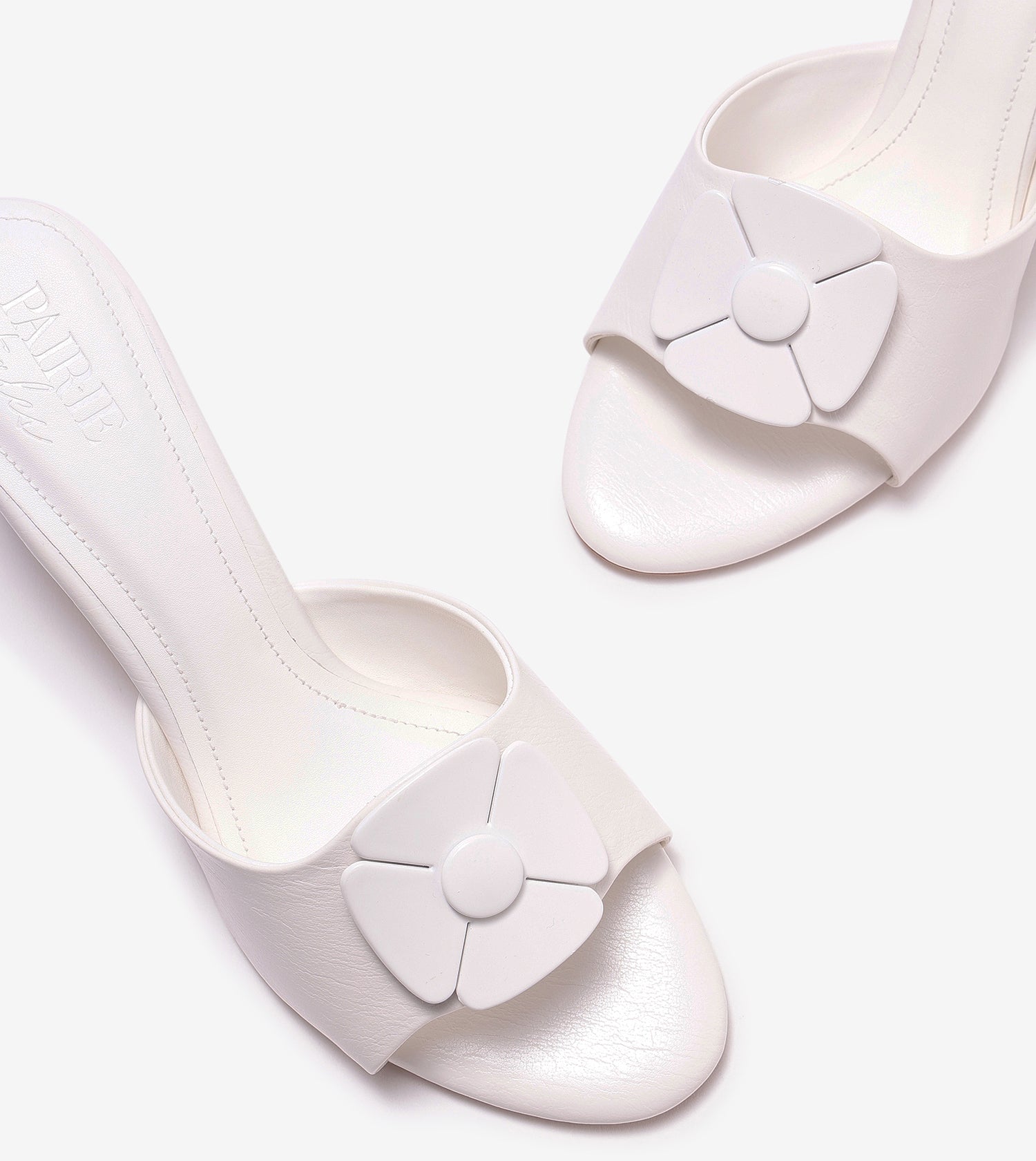 These block-heel mules make a stylish statement with thick, attention-grabbing straps featuring a delicate floral trim. The smooth round-toe shape brings a modern edge to a classic design. In timeless white, this versatile pair effortlessly enhances any wardrobe, perfect for any occasion. The sturdy block heels provide a flattering lift while offering long-lasting comfort.