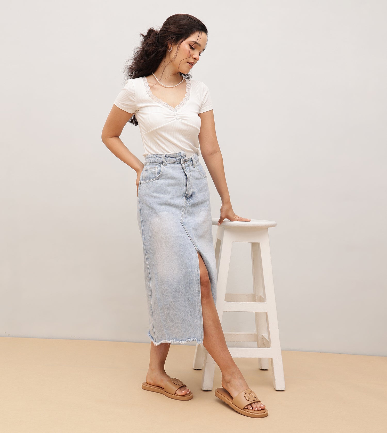 Style Tip: A boho twist comes with a tiered maxi skirt and a simple top, perfect with statement earrings.