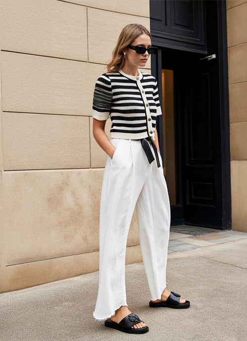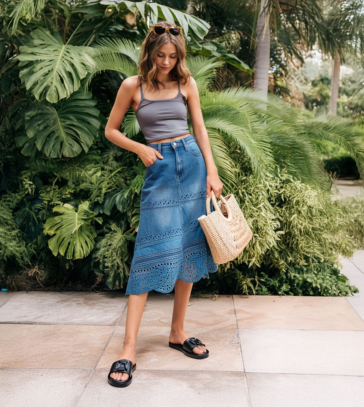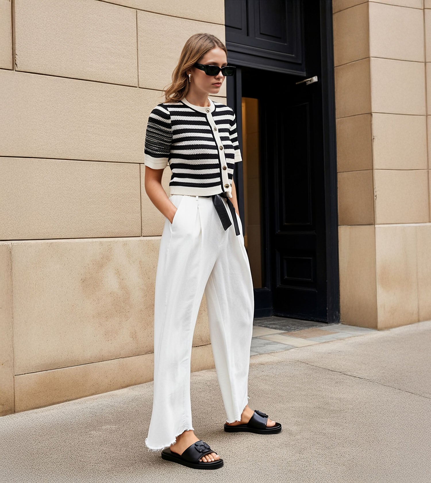 Style Tip: Think a monochrome outfit style with white jeans, a linen shirt, and silver jewelry.