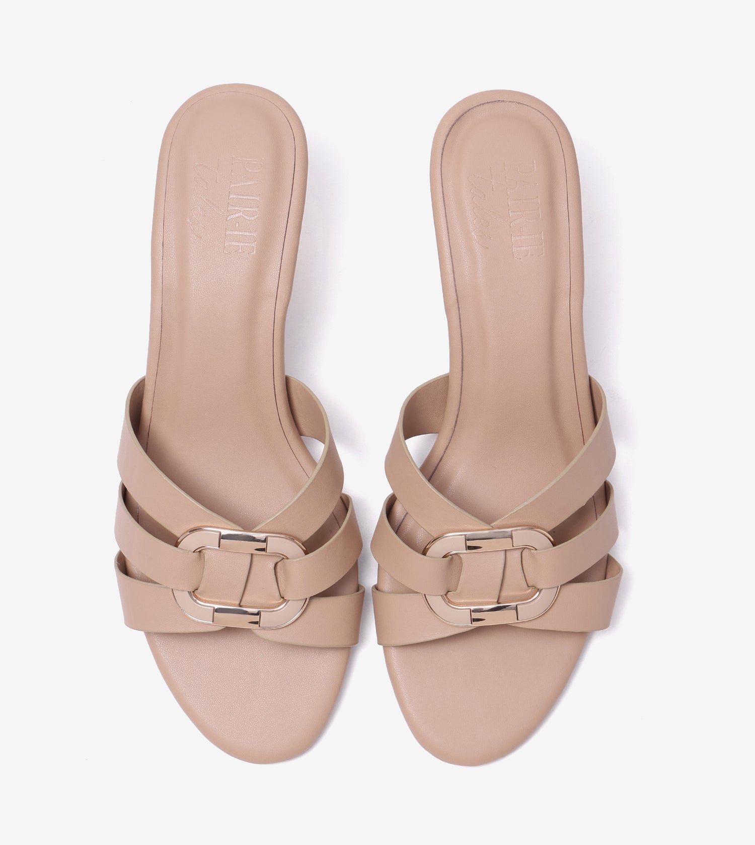 Golden Buckle Elegant Statement Heels - Beige