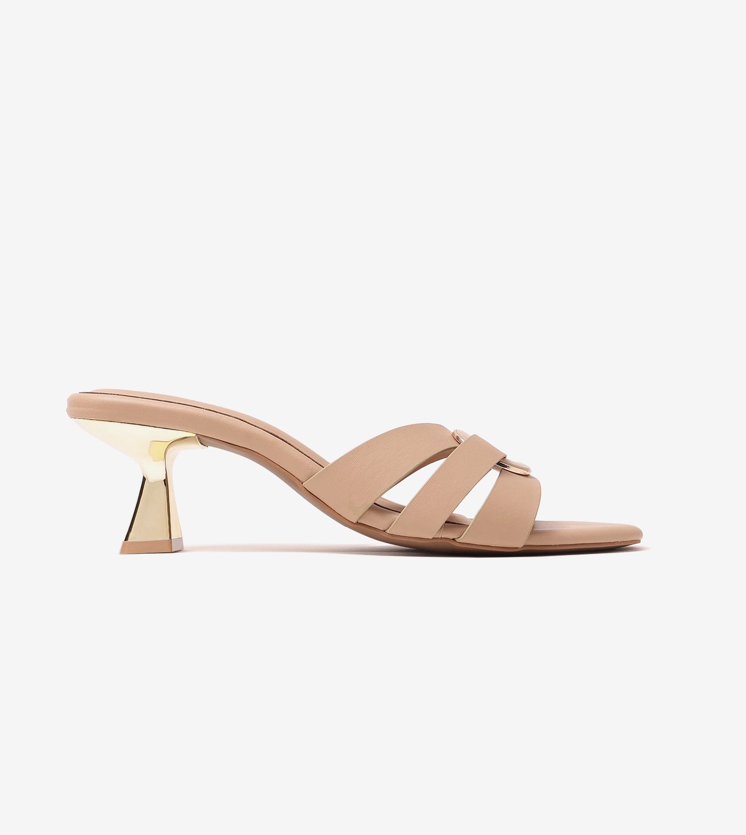 Crafted with a sleek slip-on silhouette, this statement heel features layered straps accented with refined buckle detailing for a bold yet balanced look. The open-toe design adds a contemporary edge, while the sculpted heel enhances visual appeal with a touch of modern sophistication. Designed to offer both style and stability, the structured upper ensures a secure fit, making this pair an effortless choice for occasions that demand elegance with ease.
