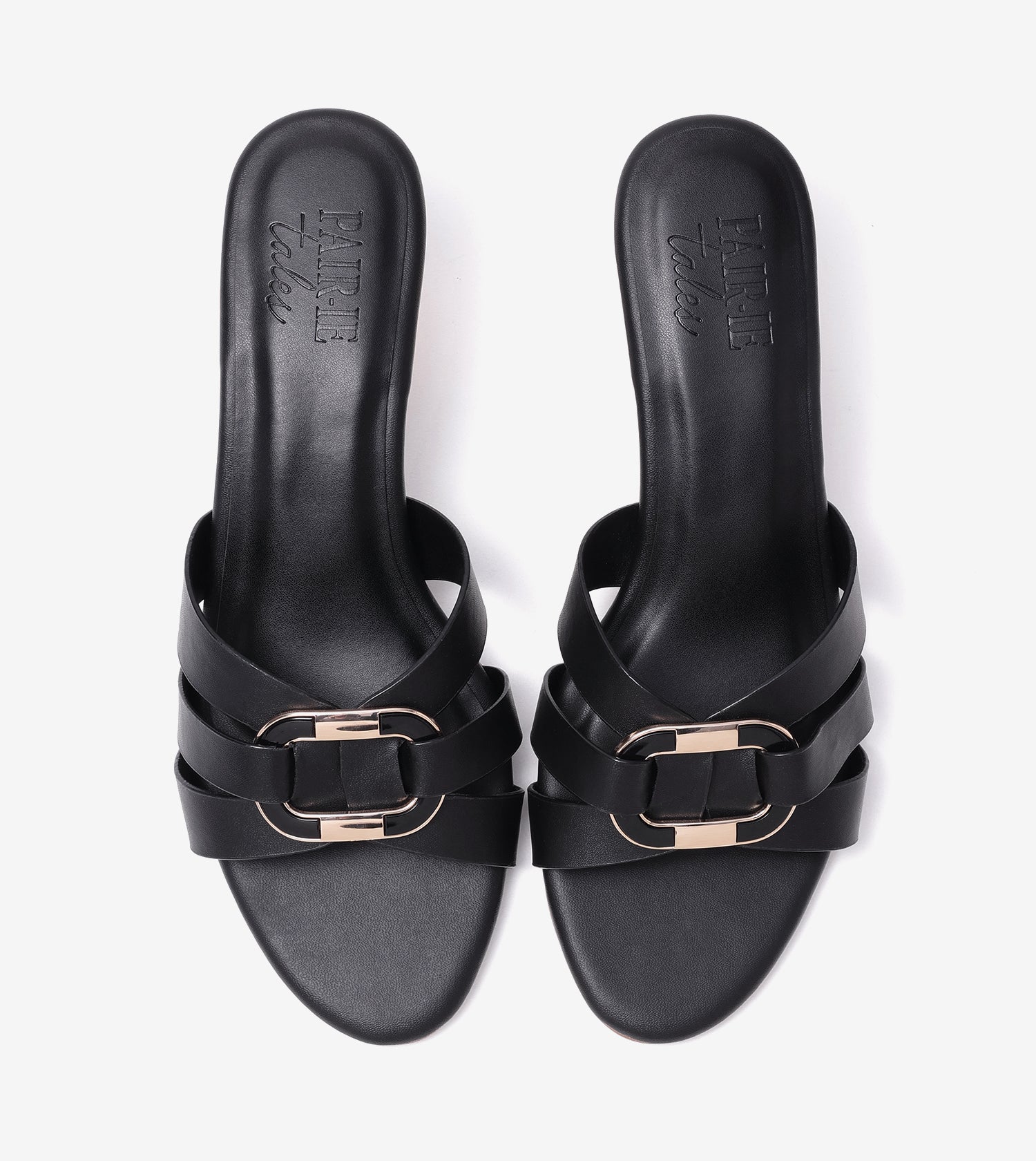Golden Buckle Elegant Statement Heels - Black