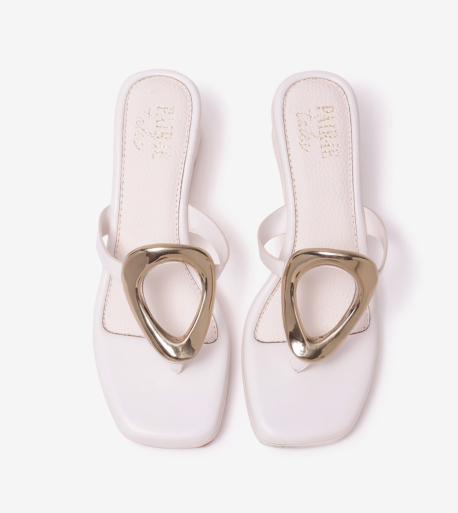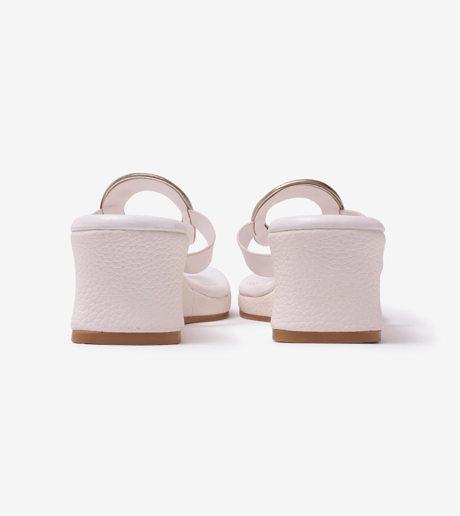 These heels features a contemporary silhouette elevated by a bold metallic accent and refined, textured finish. Expertly crafted for day-long comfort, its supportive wedge heel, lightweight feel, sleek foot straps, and slip-on style promise easy elegance and versatility. The golden trim at the toe adds a touch of modern sophistication, making it ideal for festive gatherings.