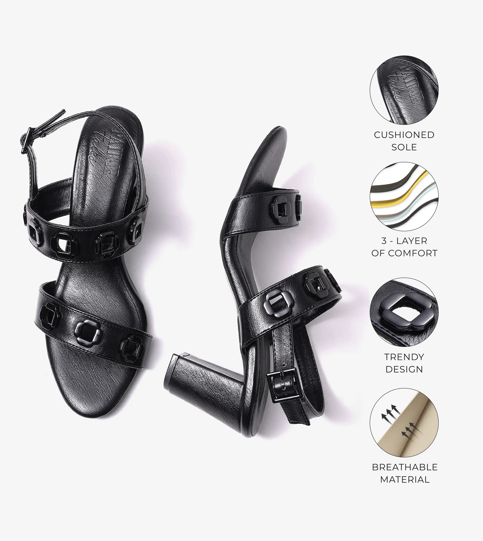 Block-Heel Sandals With Metal Appliques - Black