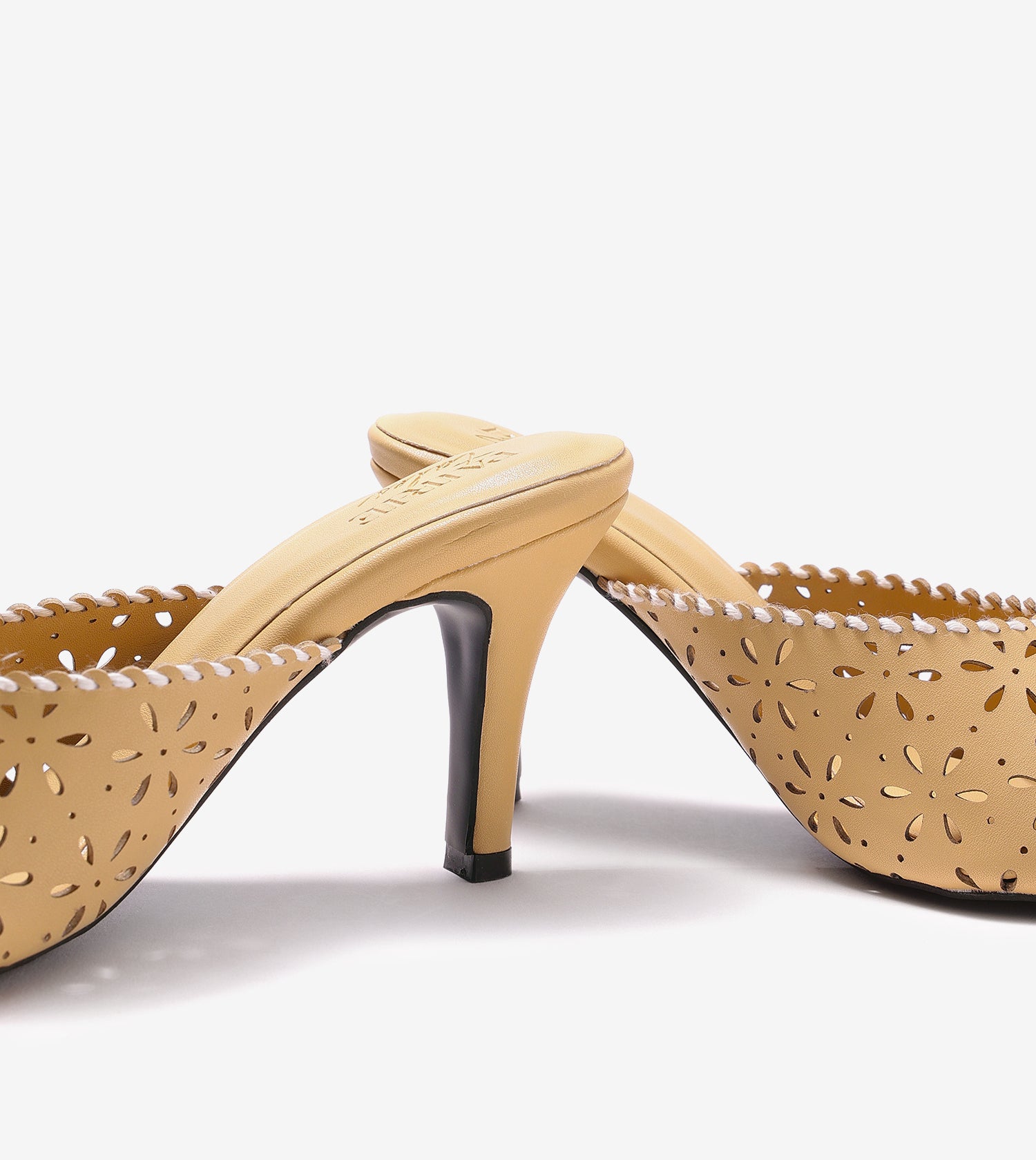 Laser Cutwork Stiletto Mules - Yellow