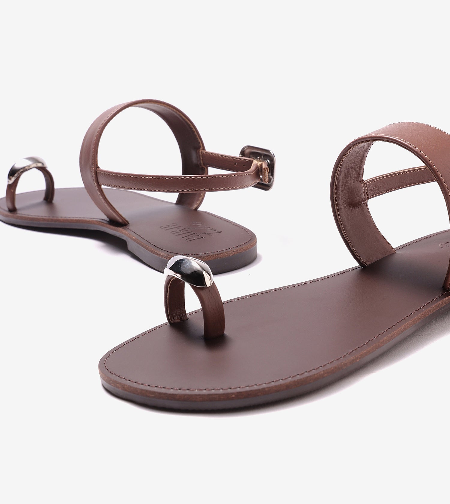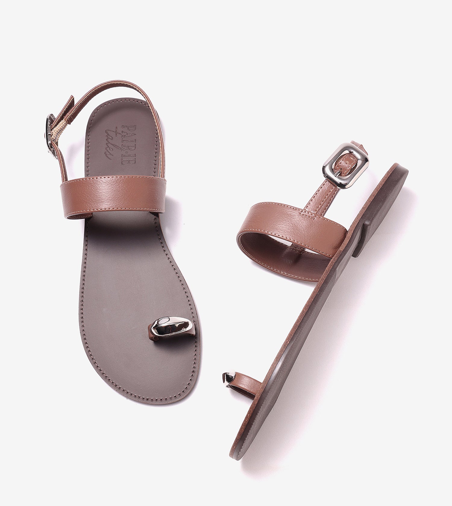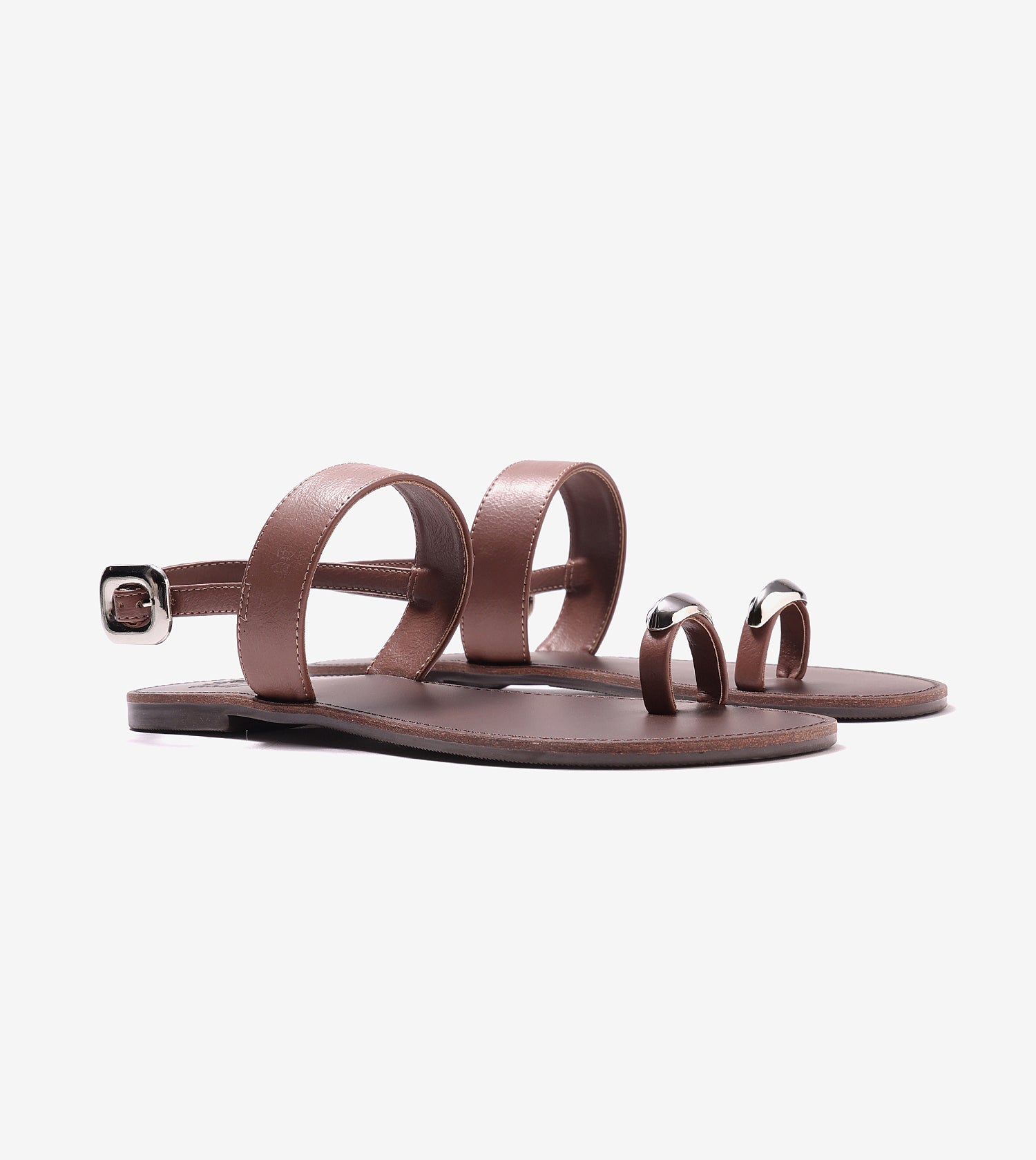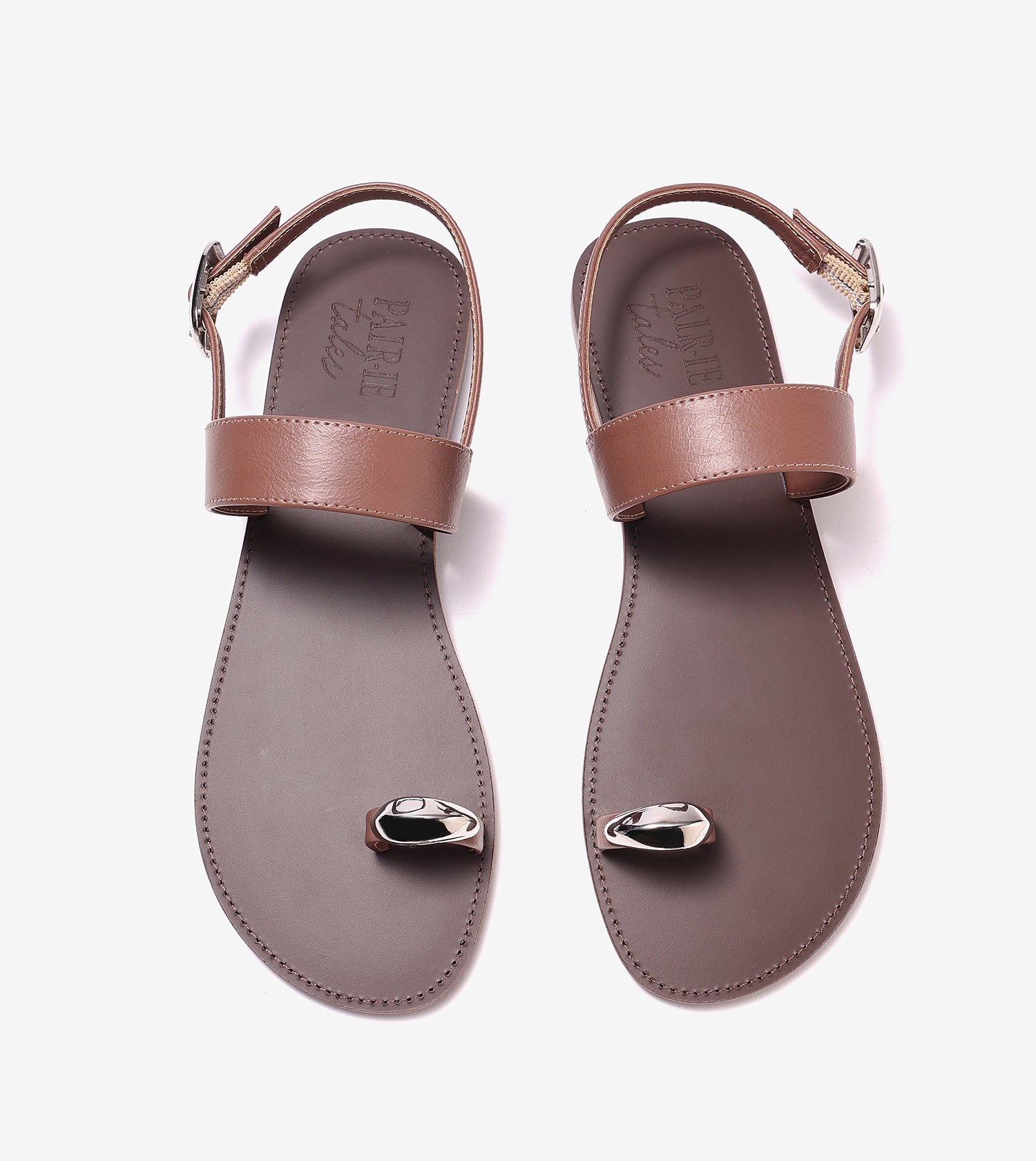 Metallic Accent Toe Ring Flat Sandals - Brown