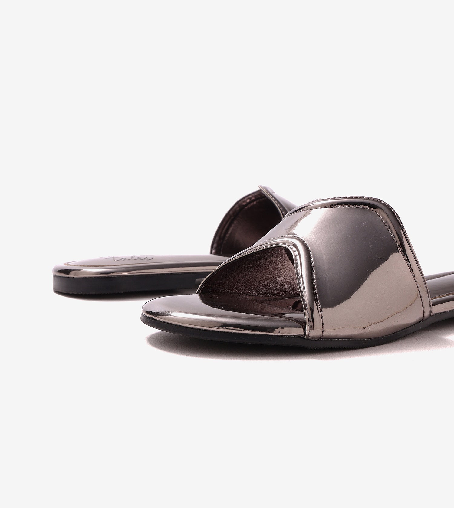 Make a statement with these wavy gunmetal flats, featuring a high-shine mirrored finish and sharp pointed toes for a bold, eye-catching look. The flats provide a flattering lift while ensuring comfort throughout the day. Whether you’re at the office or out at a party, these flats are the perfect style staple that never fails to impress.