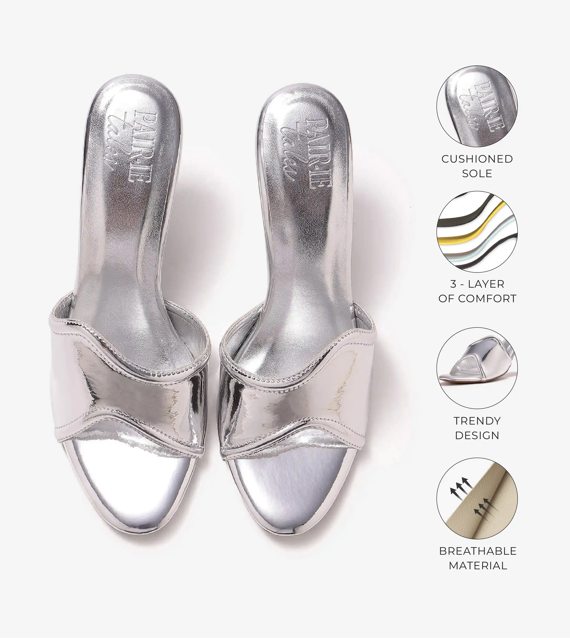 Shine bright in these wavy silver heels, crafted with a high-shine mirrored finish and sharp pointed toes to make a bold statement. The slim heels provide a flattering lift while ensuring comfort for all-day wear. Whether you’re at the office or out at a party, these heels are the ultimate style staple that always delivers.