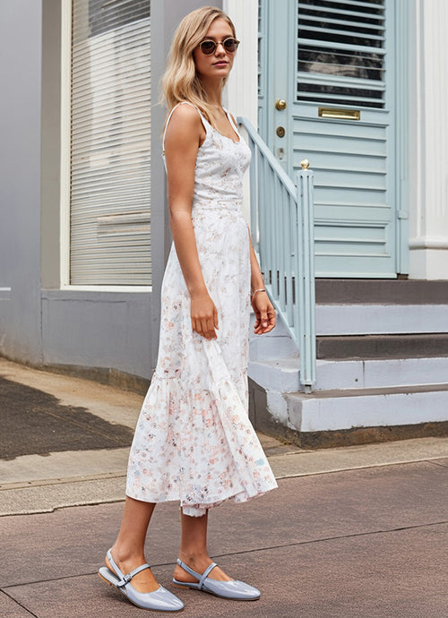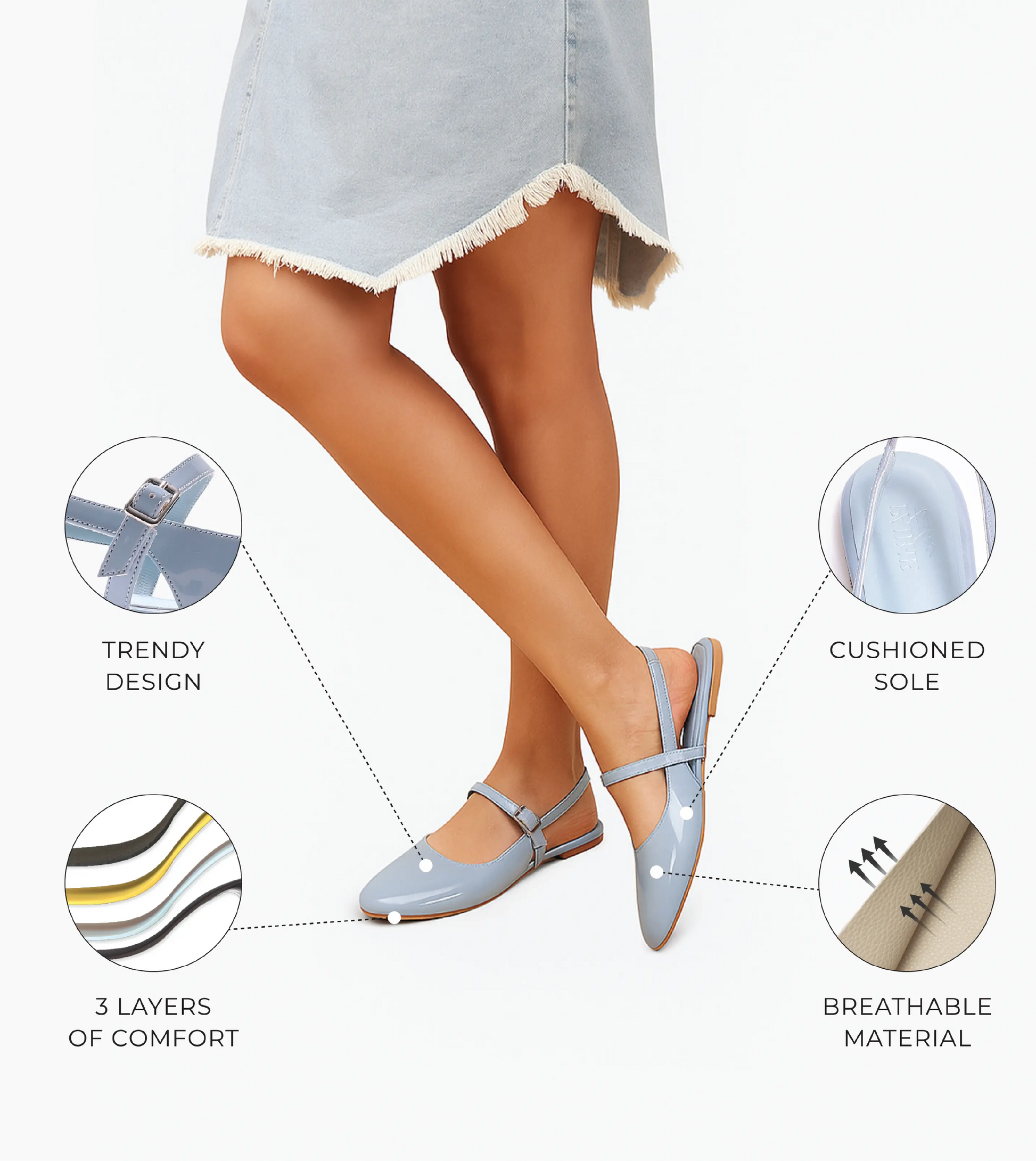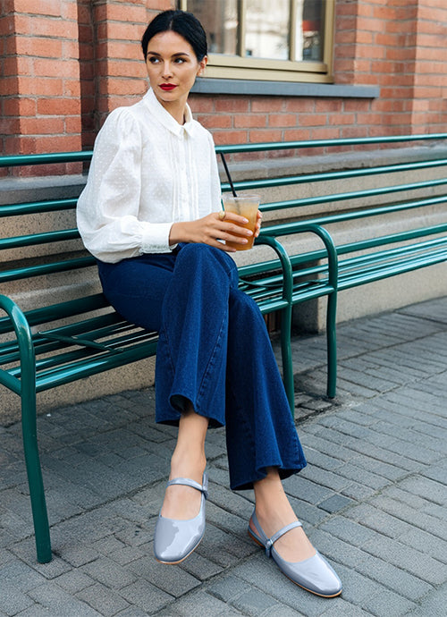 I’m absolutely smitten with these sky-blue slingback Mary Janes—the glossy patent finish adds fun, the flat sole keeps me grounded, and the vintage strap is just adorable.