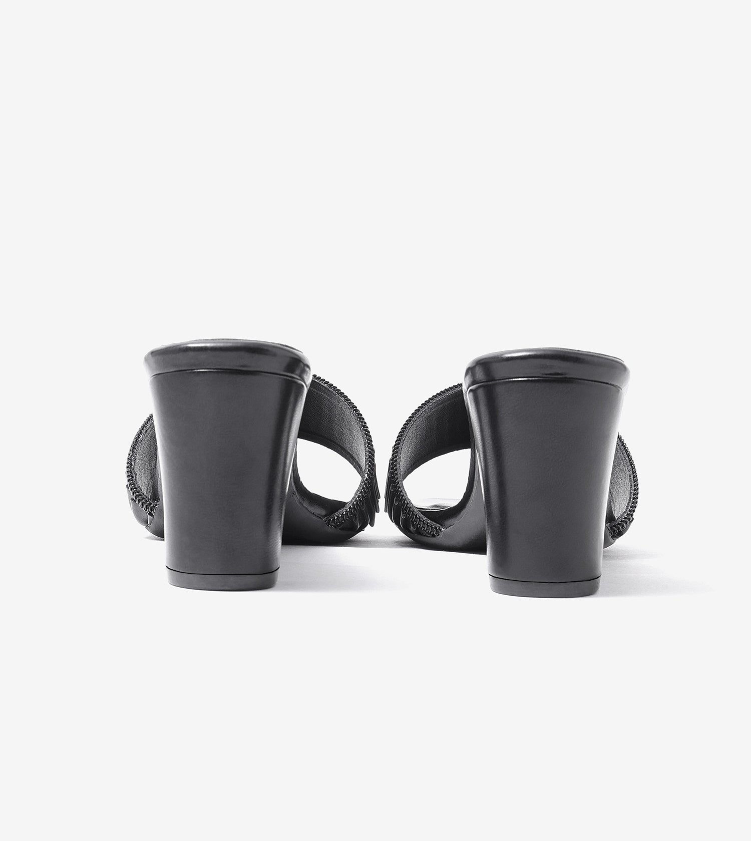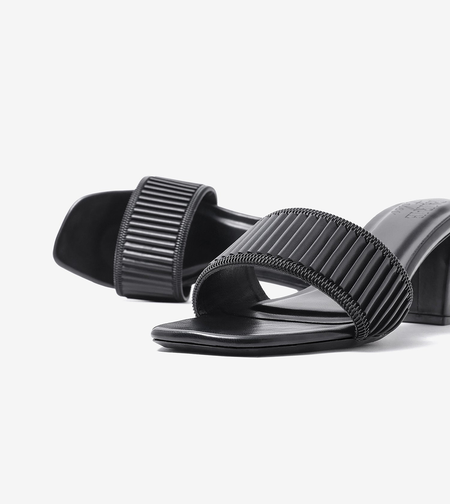 Pleated Strap Block Heel Slides - Black