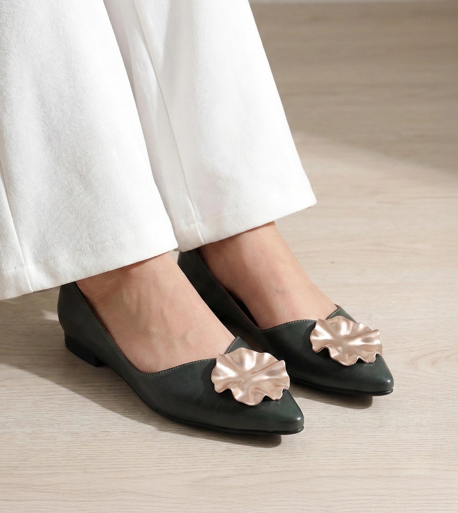 Pointed Toe Ballerinas Flats - Bottle Green