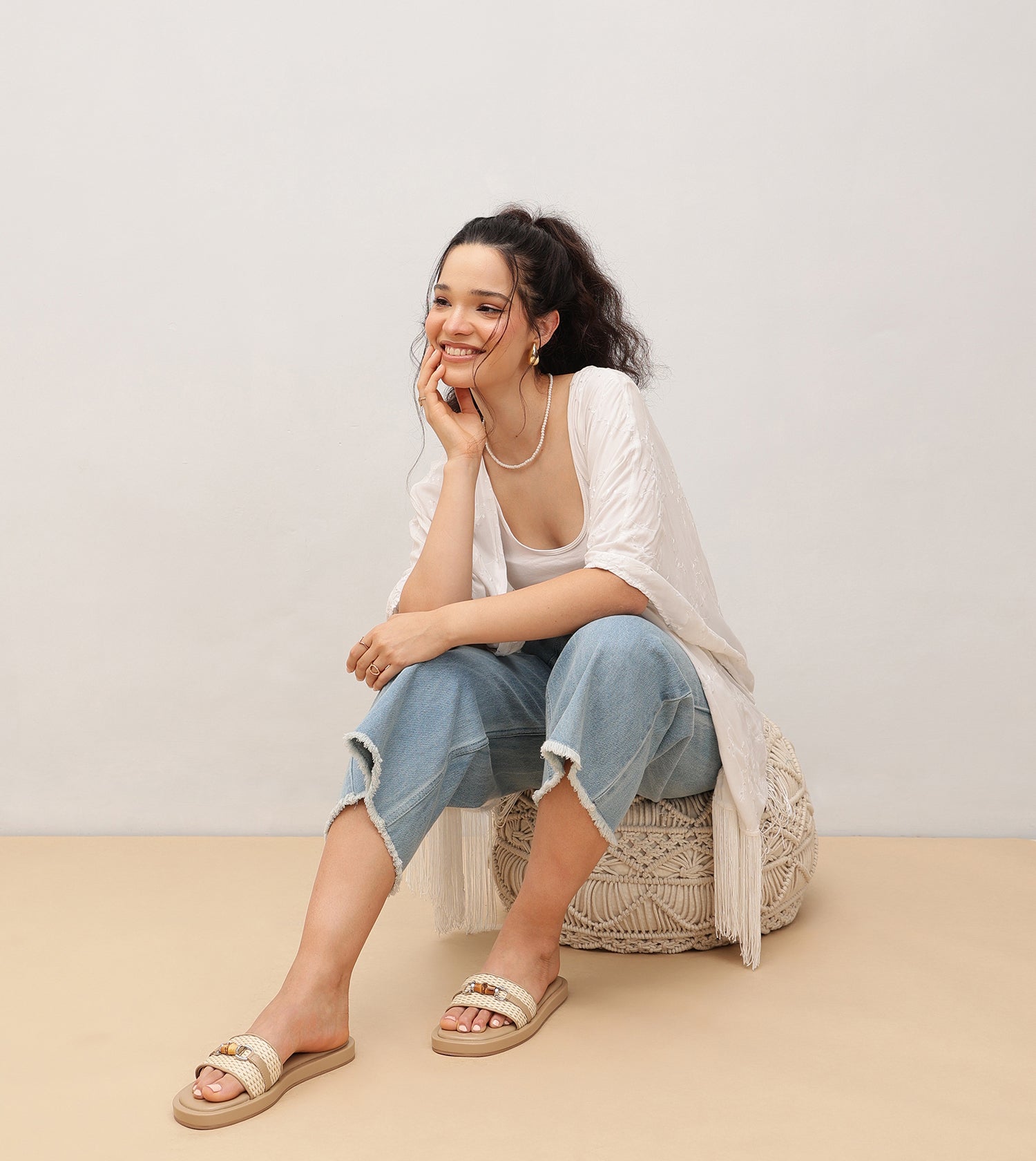 Style Tip: Don these flats with a tan shirt dress, and a woven crossbody tote for an effortless and natural weekend look.