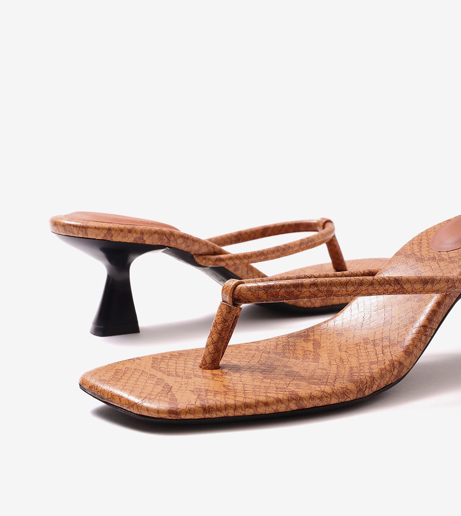 Meet your new go-to pair with it's sleek heeled slip-on blends sophistication with subtle edge, crafted in textured faux leather that feels as luxurious as it looks. The slender straps hug your feet with just the right grip, while the square toe and kitten heel give it that contemporary twist. Designed for all-day comfort without compromising on style.