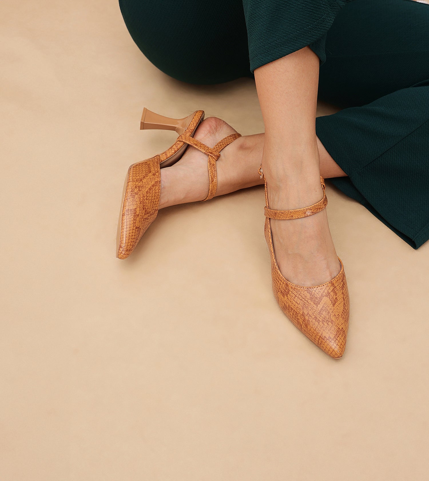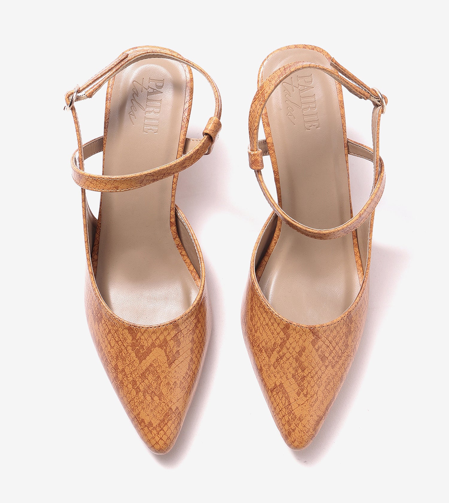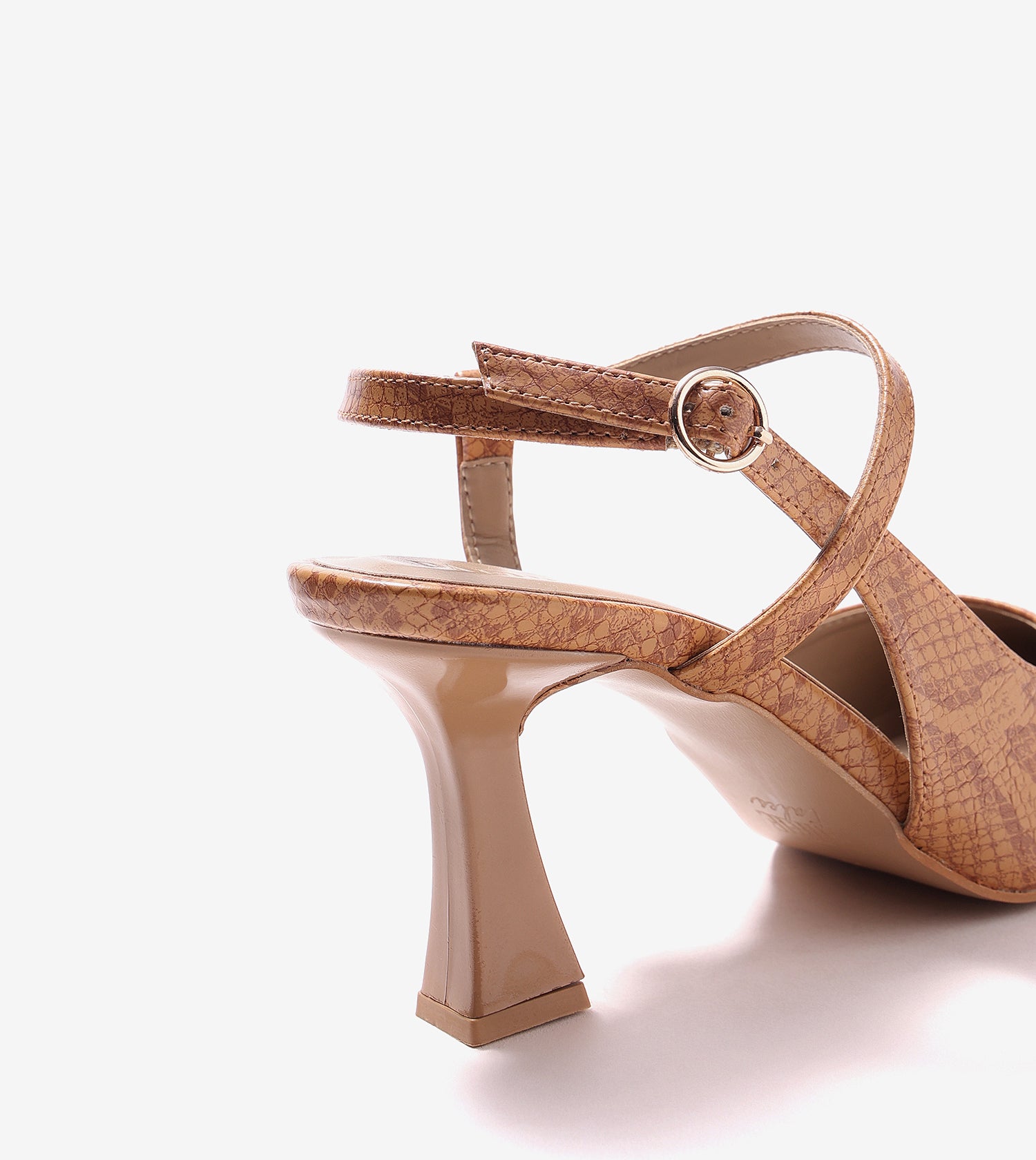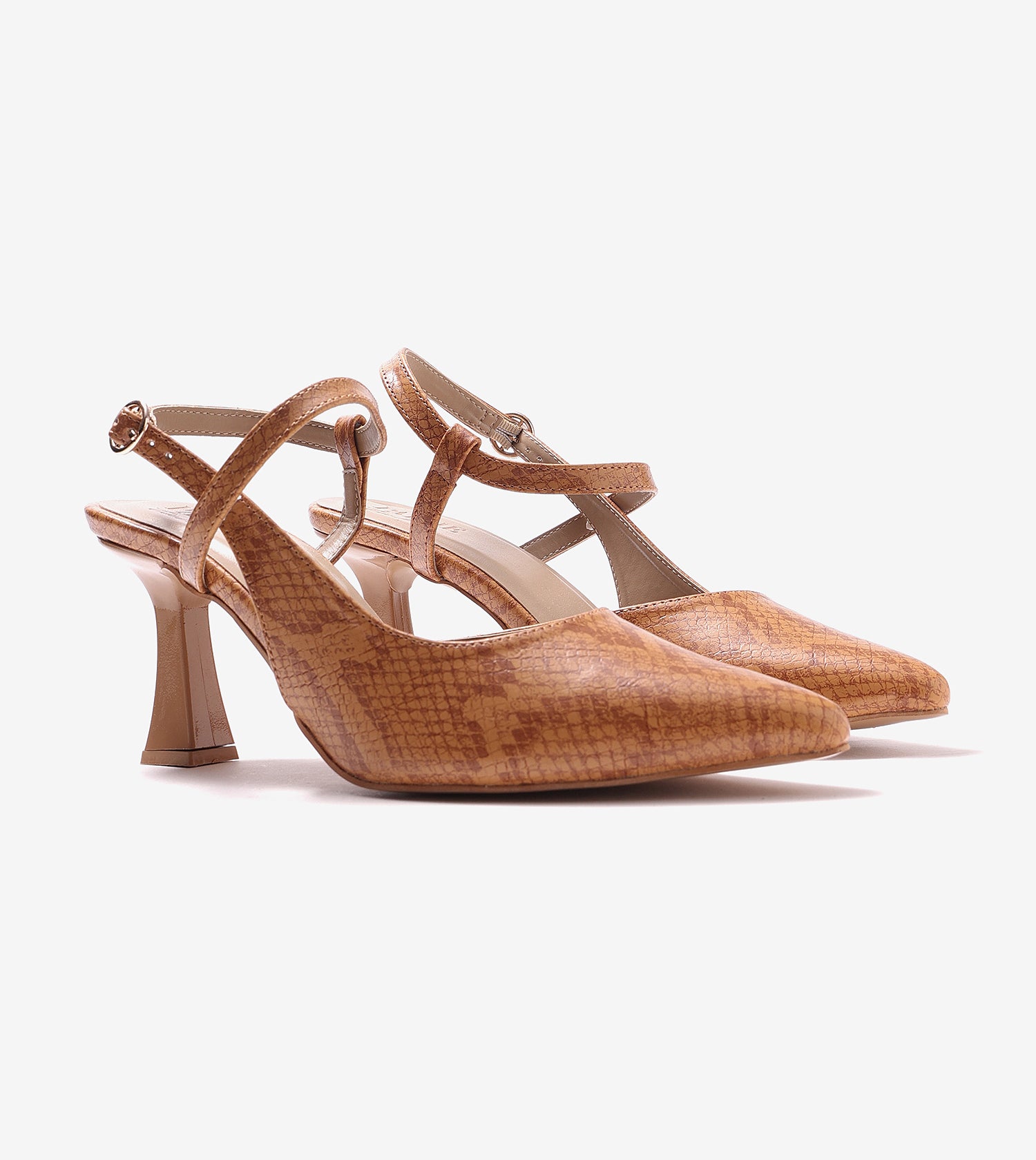 Snake Print Pointed Toe Slingback Pumps - Tan