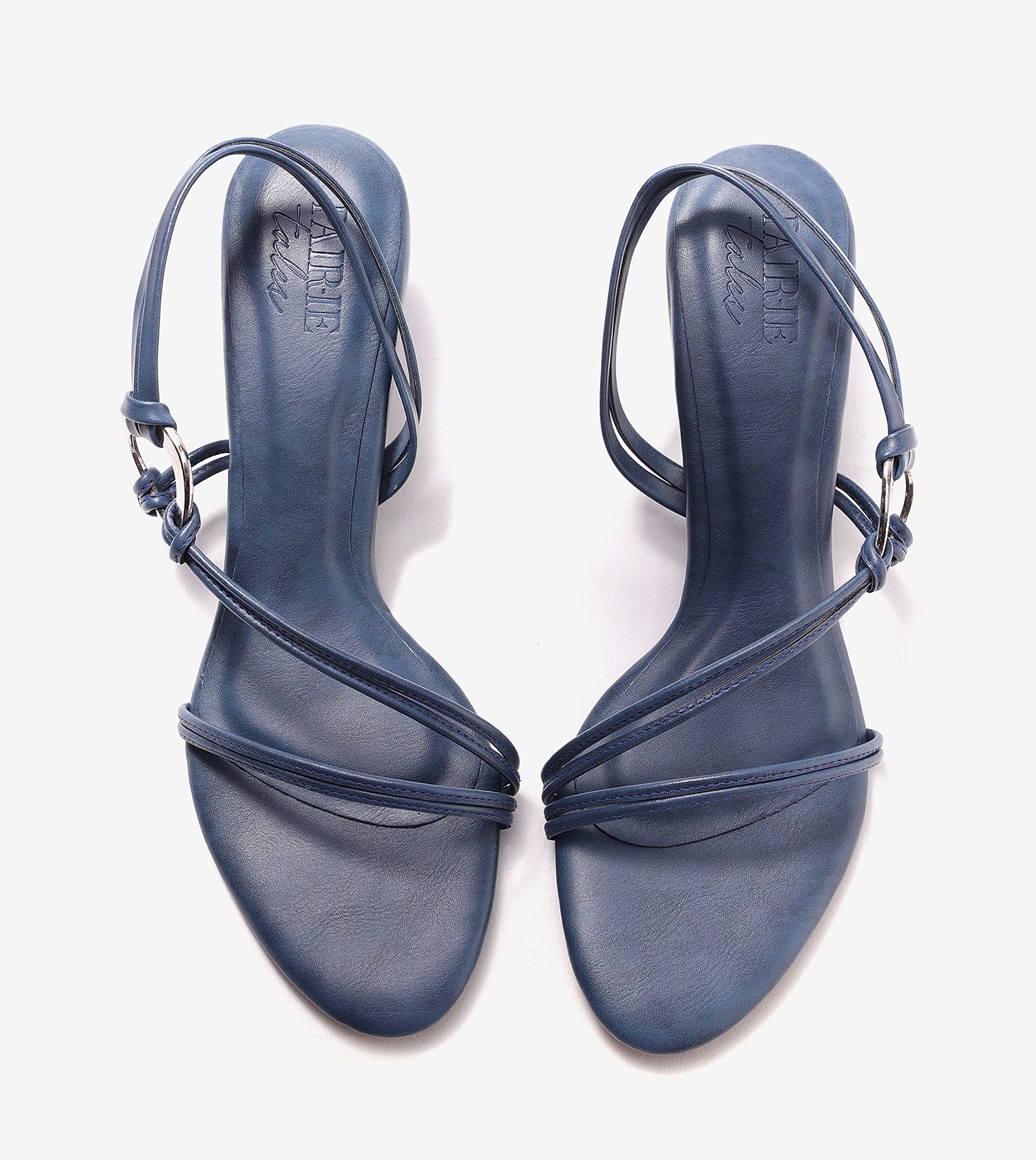 Strappy Kitten Heel With Metallic Adornment - Blue