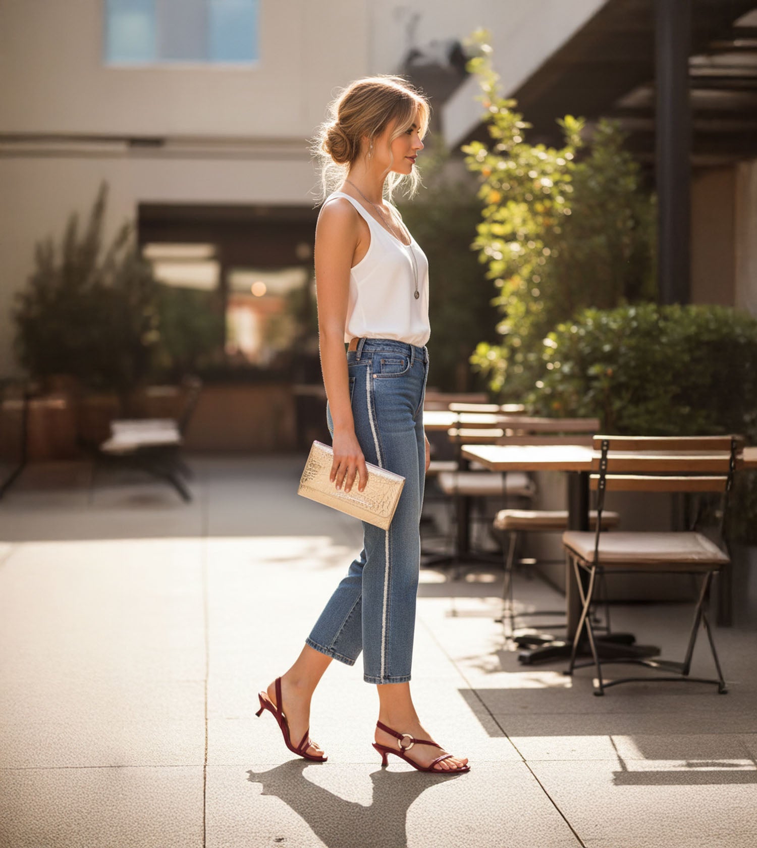 Just grabbed these cherry strappy kitten heels—love the chic metallic touch! Super comfy 2-inch heel, perfect for long outings without sore feet.
