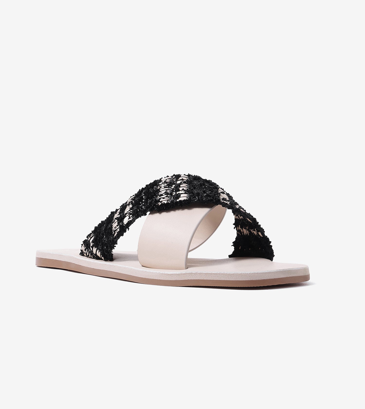 These cross-strap slides blend tactile detailing with effortless wearability. The structured upper offers a secure yet relaxed fit, while the cushioned footbed supports all-day comfort. Easy to slip on and endlessly versatile, this pair transitions seamlessly from casual workdays to laid-back evenings, making it a dependable staple for modern wardrobes.