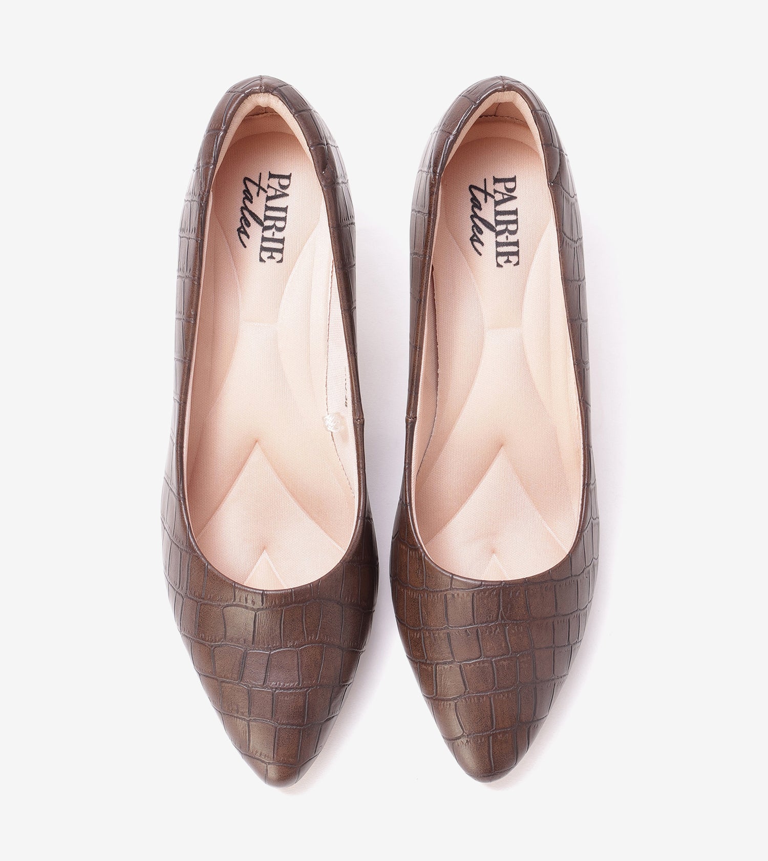 Designed with a refined pointed toe and an elegant sculpted heel, this pump blends timeless structure with modern detailing. The embossed grid texture adds depth and character while maintaining a polished, versatile aesthetic. Its streamlined silhouette elongates the foot, making it ideal for both professional and dressier settings. The balanced heel height offers poise without compromising comfort, making it a dependable choice for long hours and elevated occasions alike.