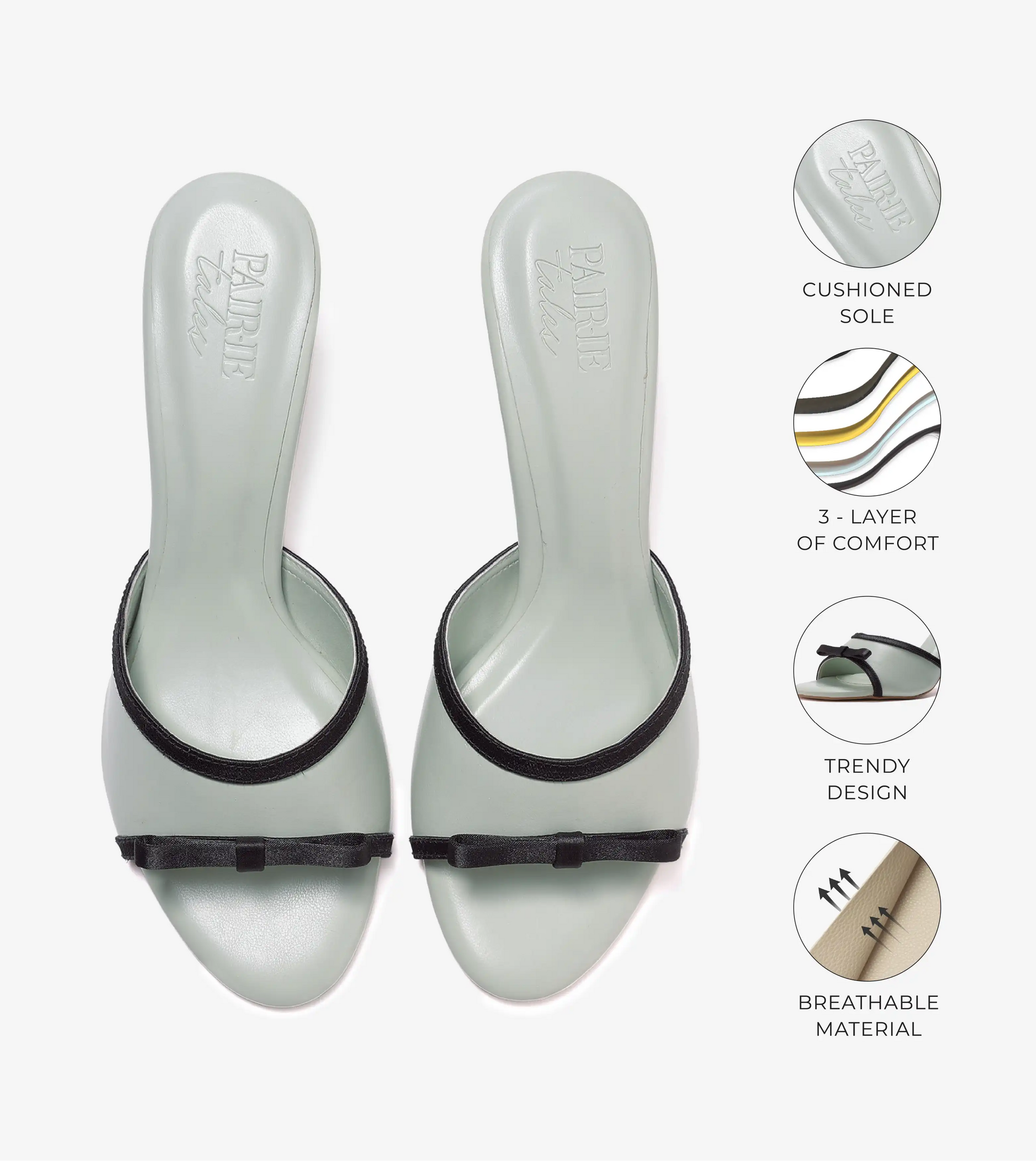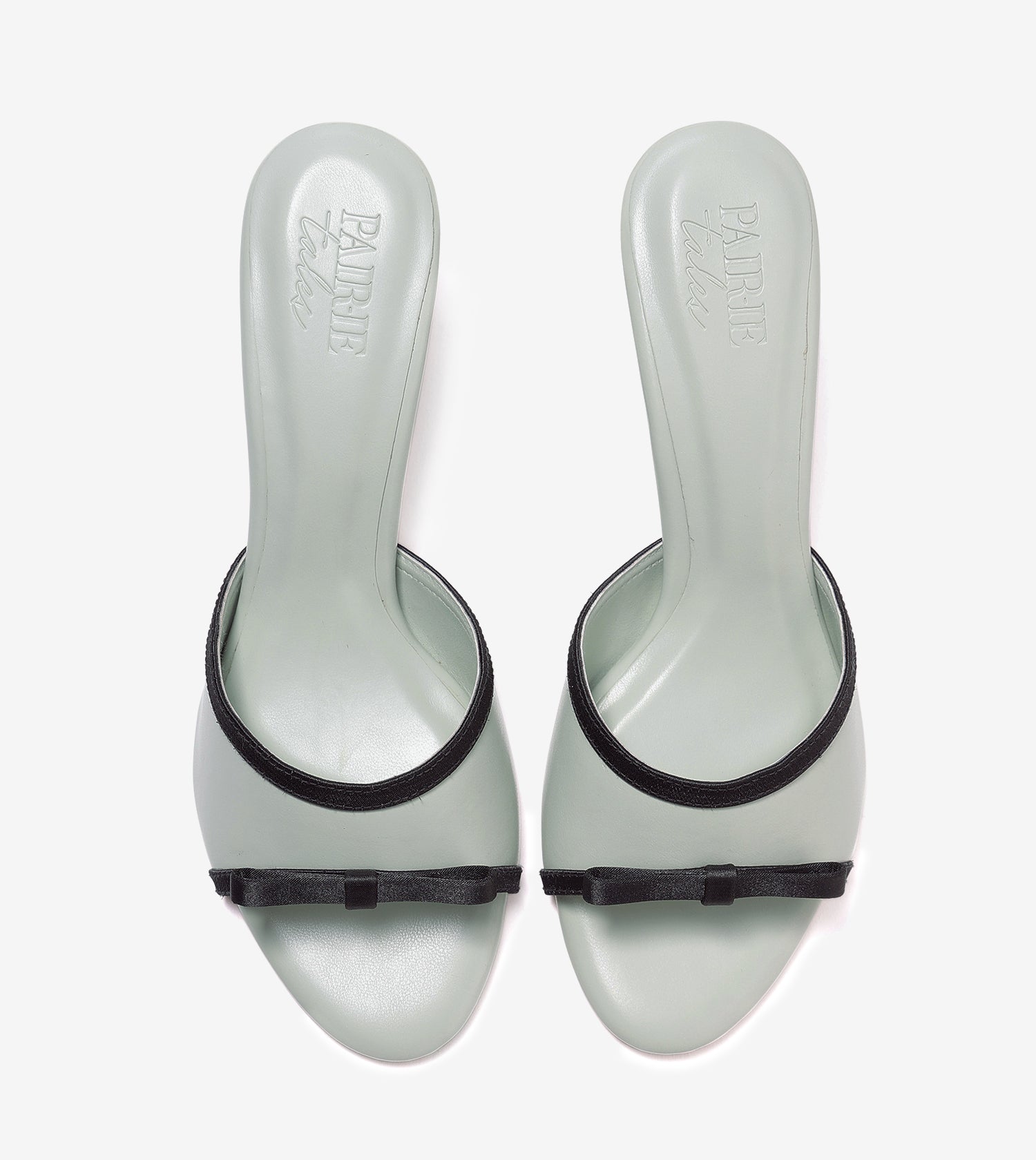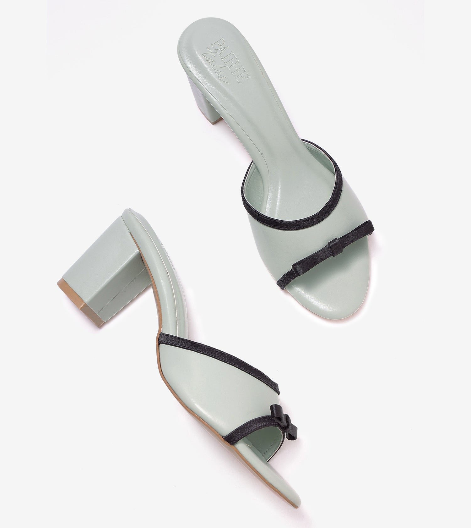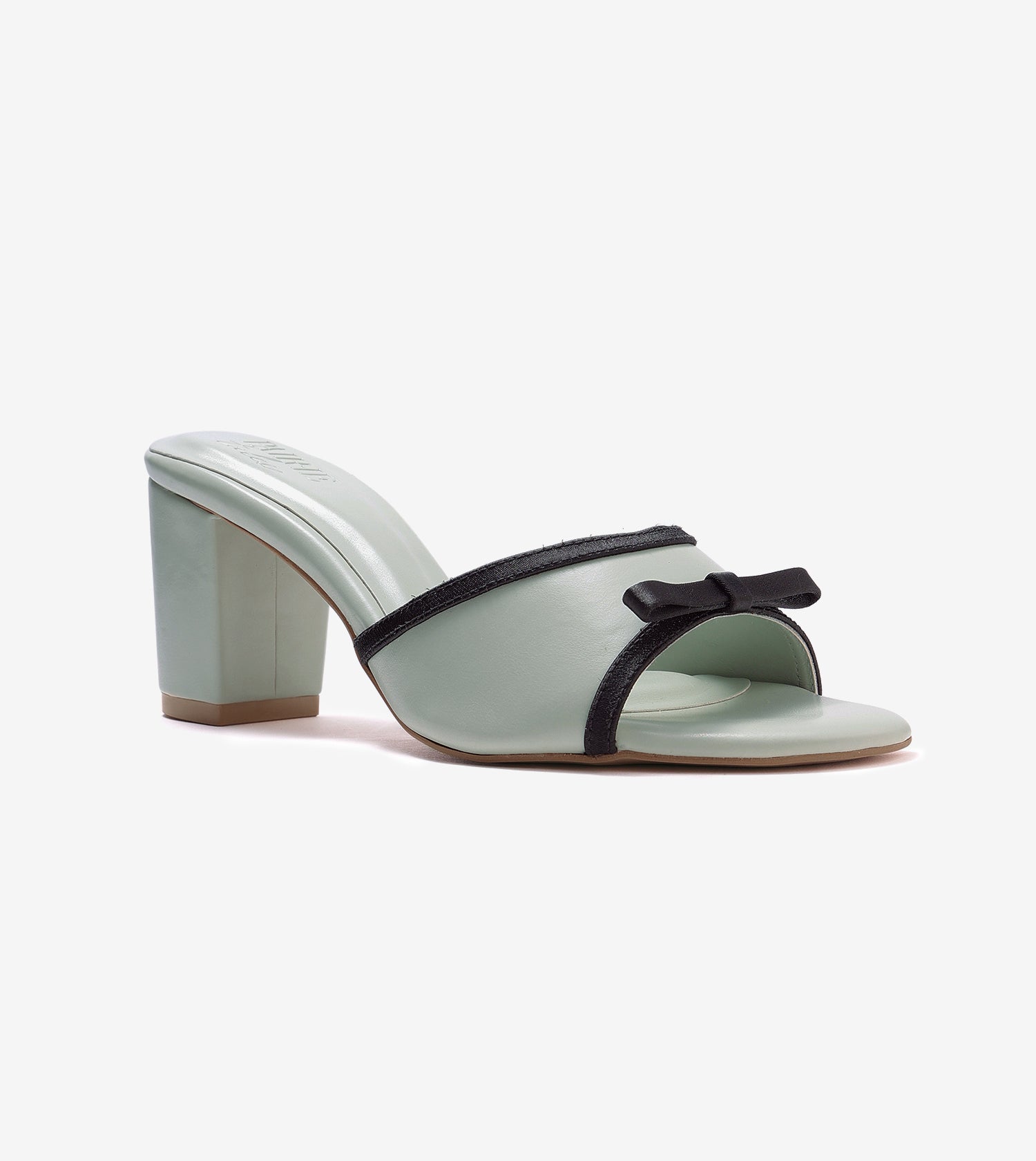 These mules effortlessly elevate any outfit with a touch of sophistication. The satin bow detailing adds a refined twist to the casual open-toe design. Crafted from sage green faux leather, they promise lasting versatility for seasons to come. Set on block heels, they provide a subtle, flattering lift to your frame.
