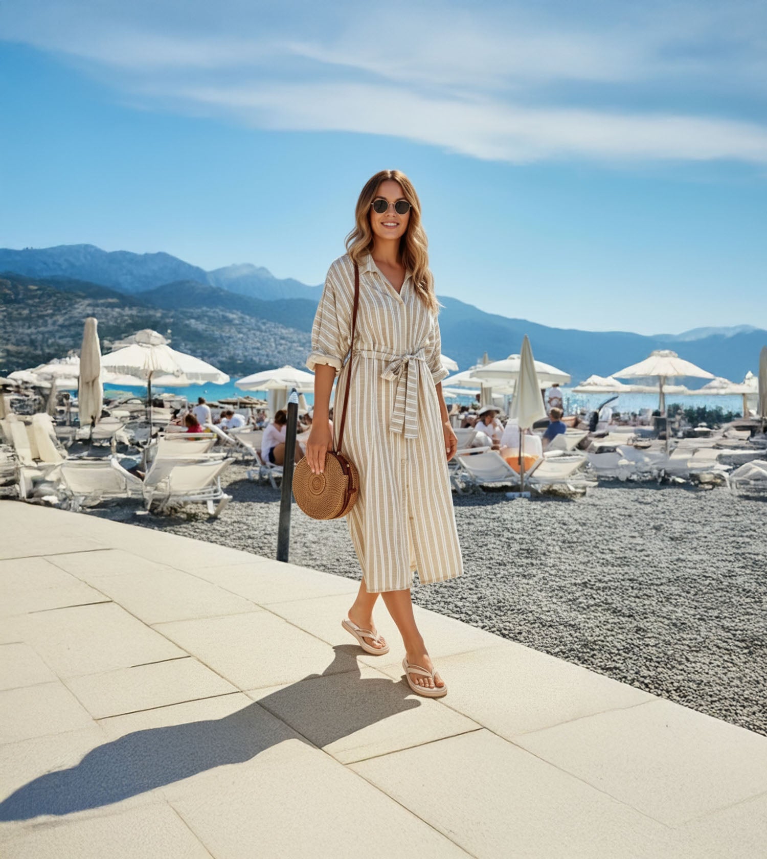 Style Tip: A midi wrap dress in a soft floral pastel print for a relaxed brunch outing.
