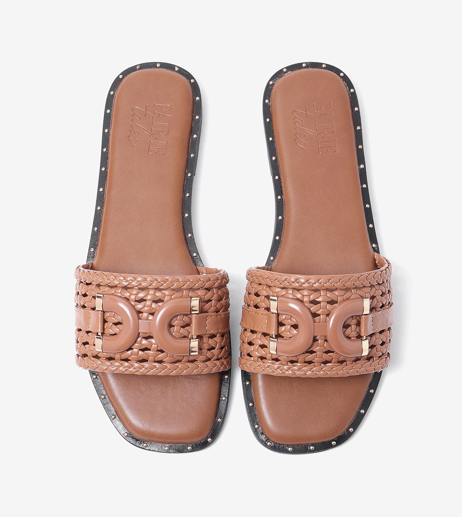 Woven Buckle Detail Slide Flats -Tan